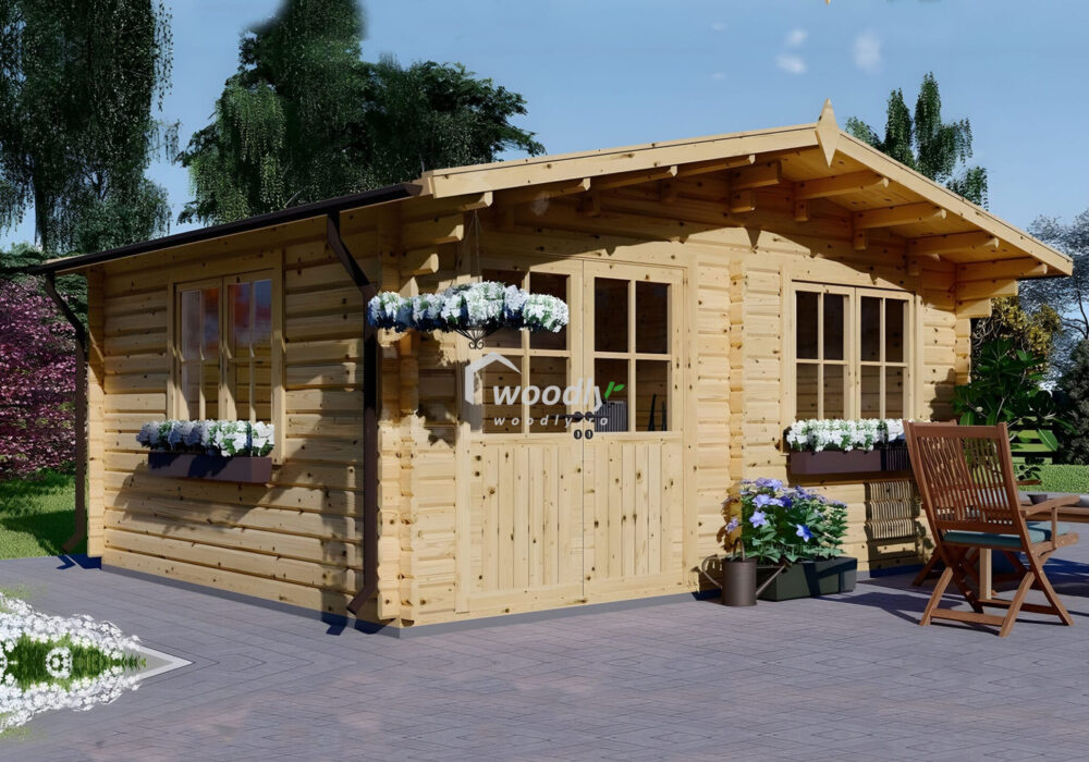 Cabana din lemn masiv de 44mm NATURA ofera un spatiu de 12mp cu utilizare versatila, de la spațiu de relaxare la birou, refugiu de weekend, sau depozitare.
