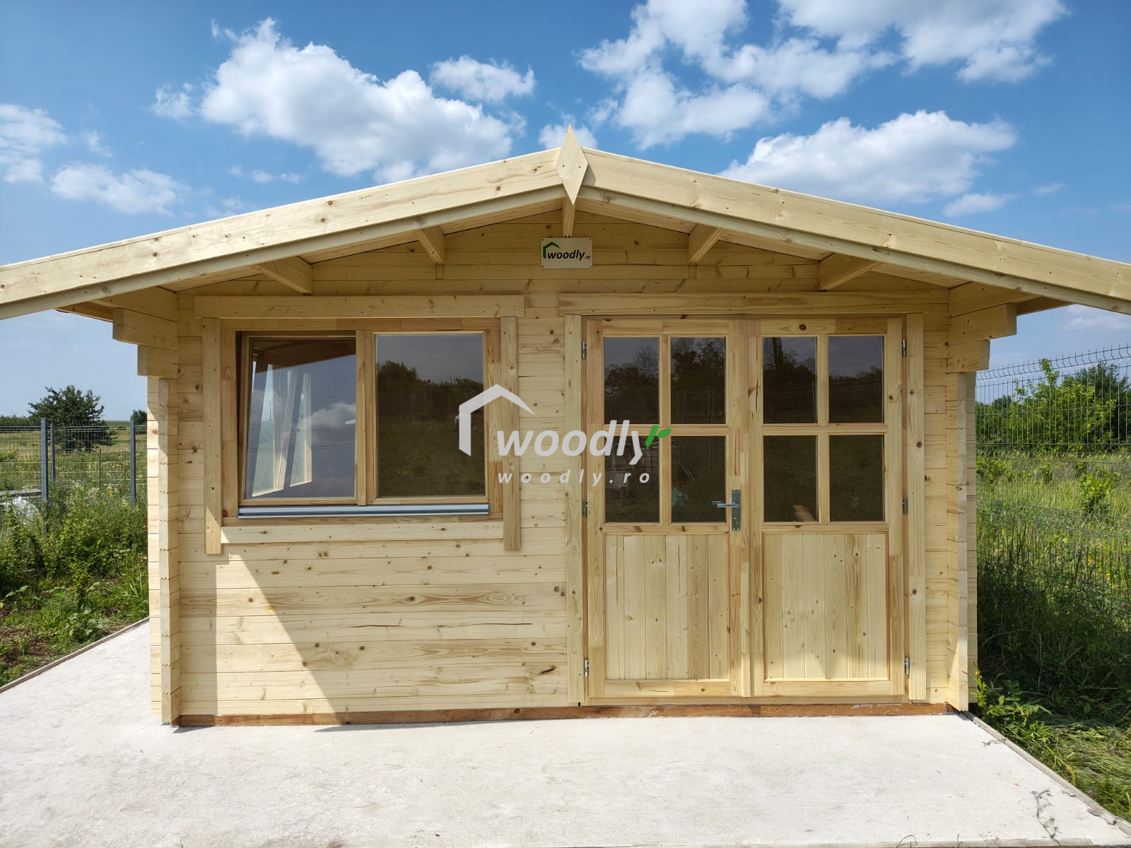 Căsuță de grădină din lemn la cheie, NATURA, modulară, 12mp, o camera, 4x3m, perete unic 44mm. Montaj realizat de echia woodly