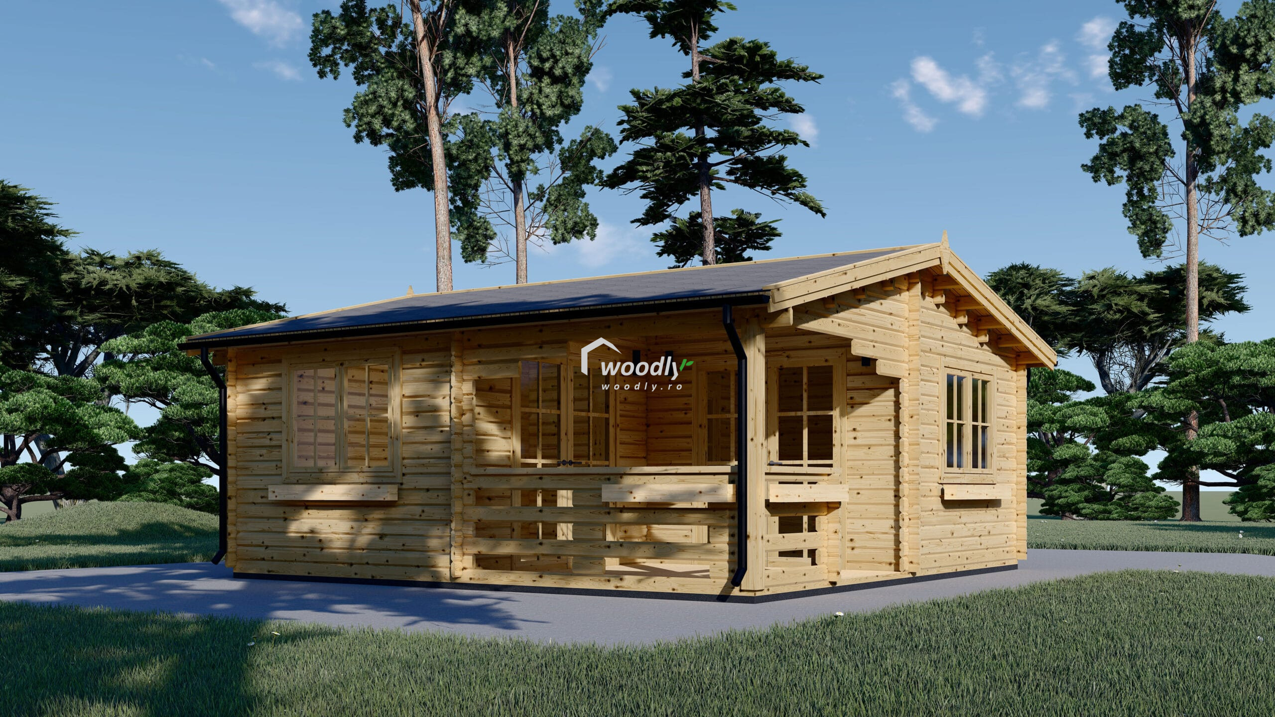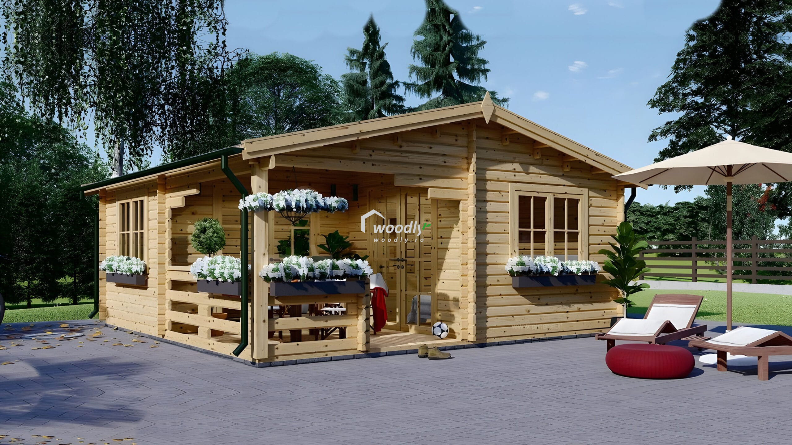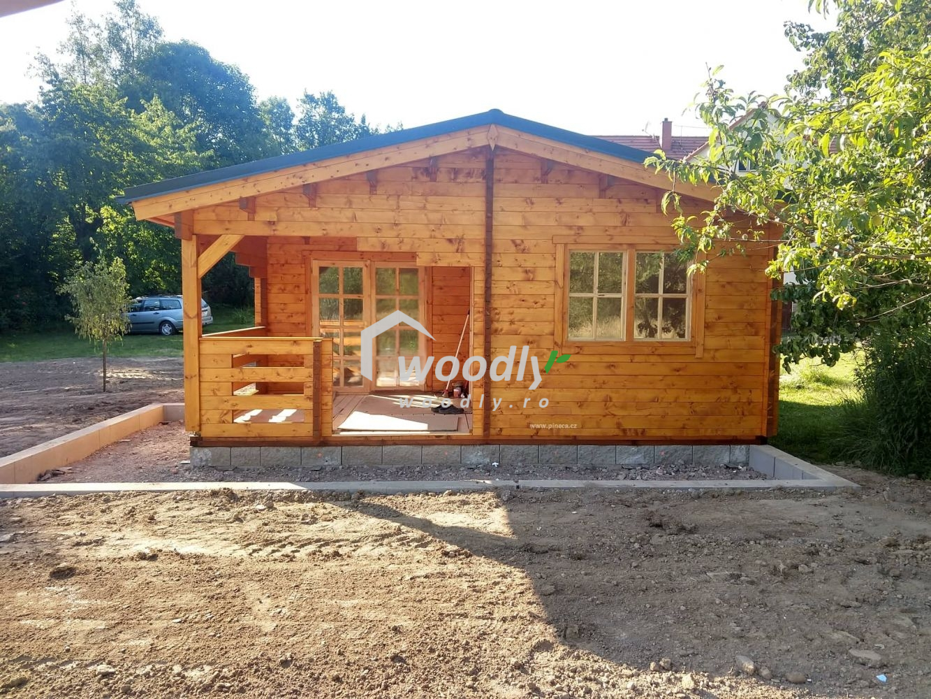 Cabană din lemn 35mp, 2 camere, baie, terasa, 6x6m, OLIVIA, montaj si vopsit de echipa Woodly in Cluj