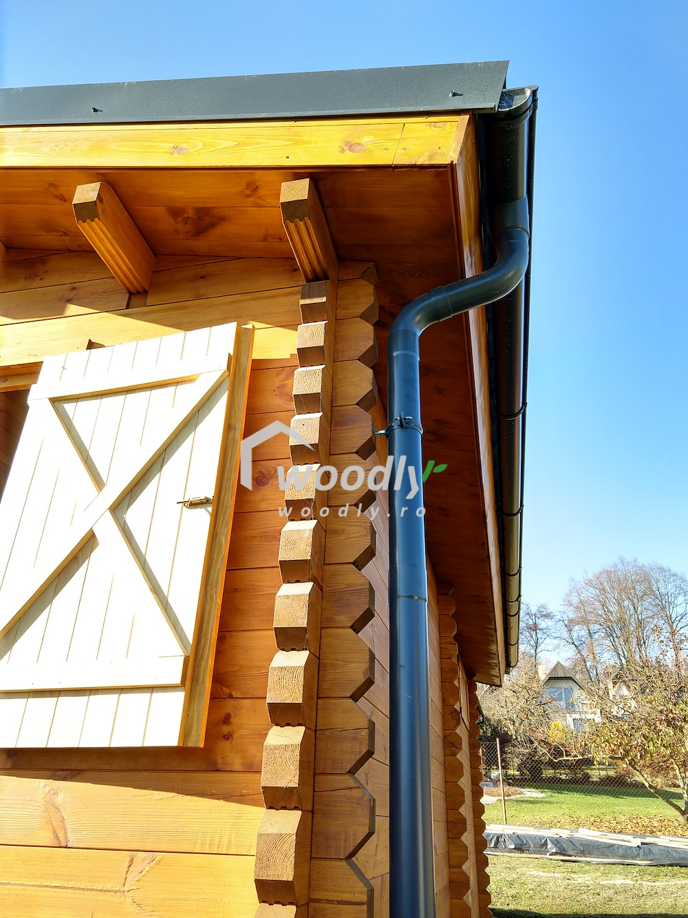 • Pereți dubli și izolație: Realizată din lemn de 34 mm pe ambele părți, cu izolație de 50 mm între ele, oferind un climat interior plăcut în orice sezon.