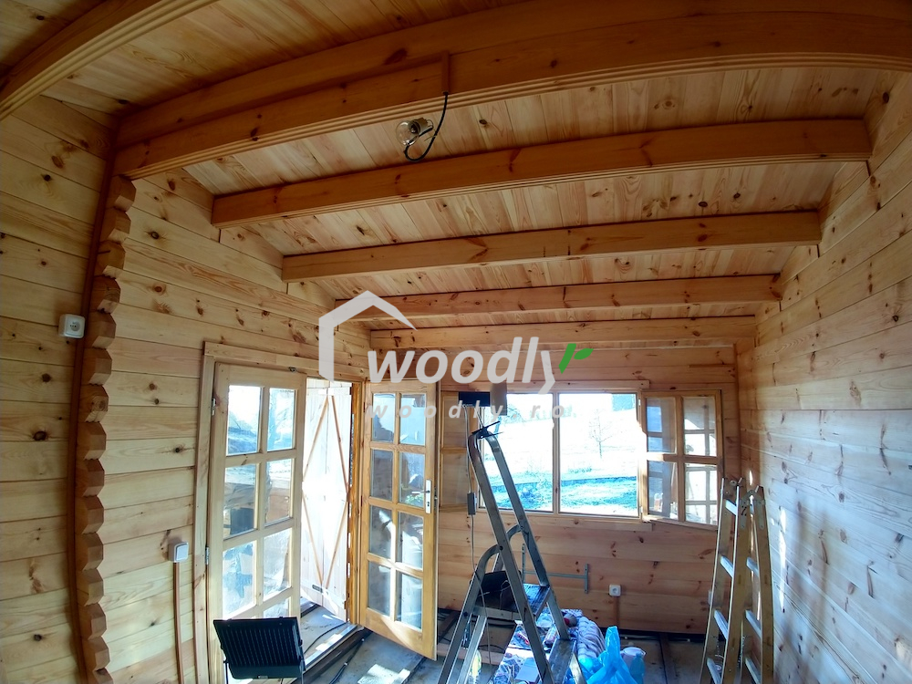 La unele variante de case, utilizăm lambriuri din lemn de 20 mm pentru pereți de 44 mm sau 34 mm, rezultând opțiuni de pereți de 64 mm (44+20 mm) sau 54 mm (34+20 mm).