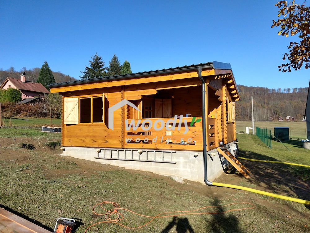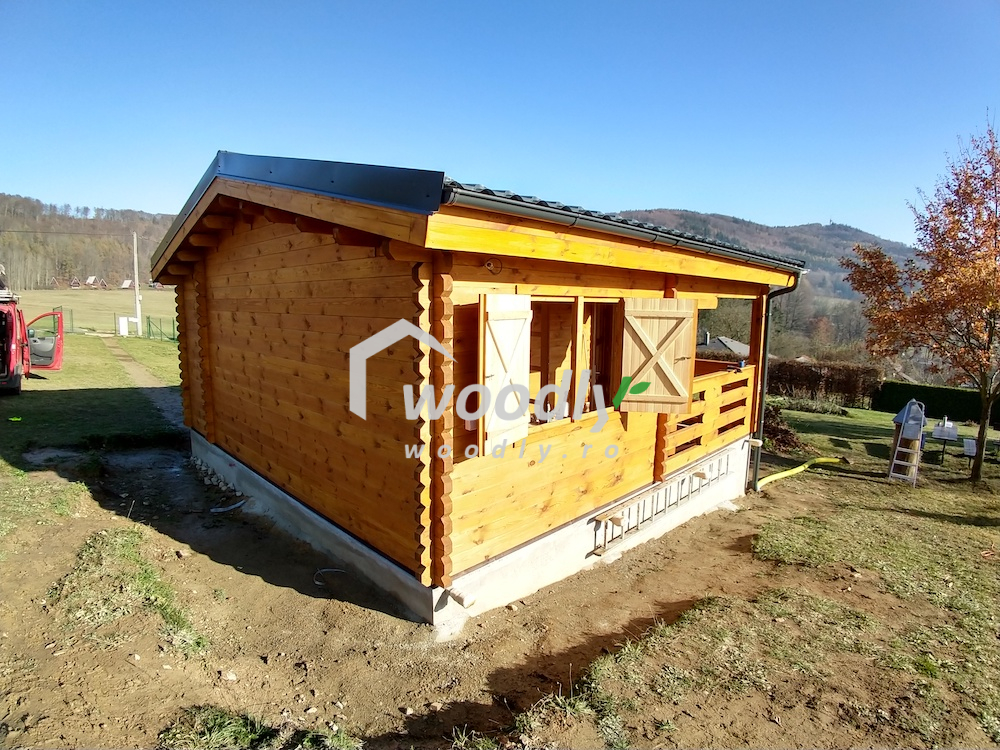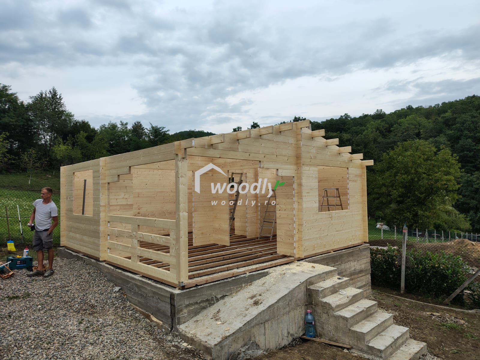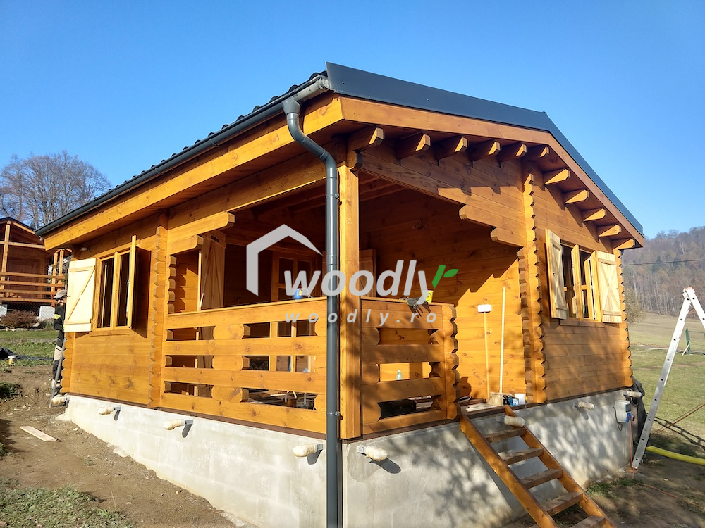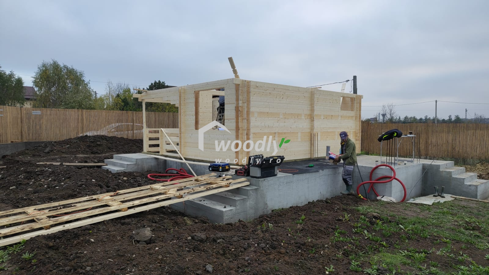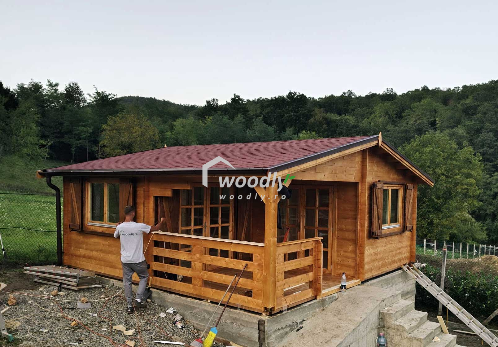 Ștefănești, Argeș – montaj cabană din lemn izolată OLIVIA, 35 mp