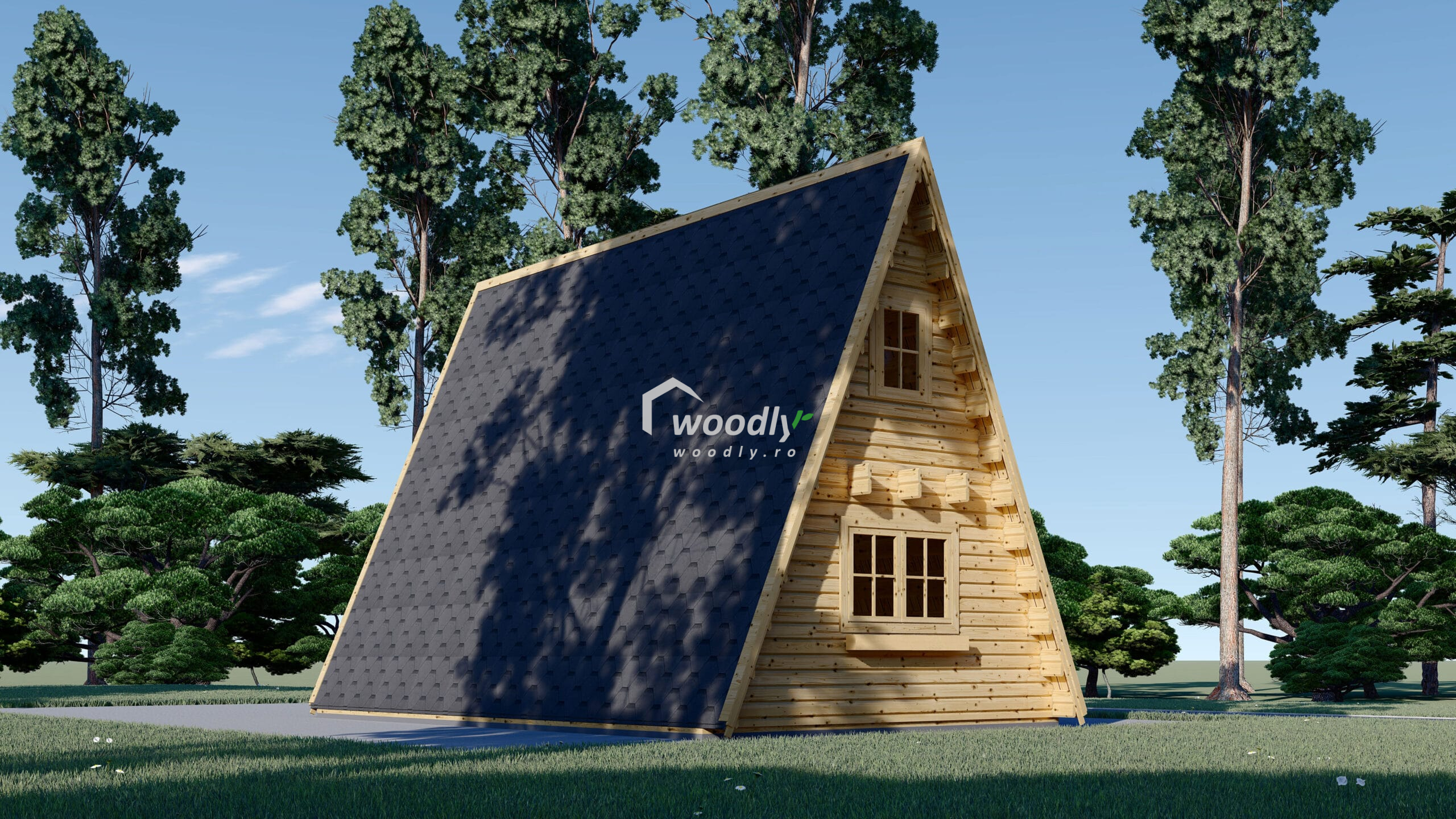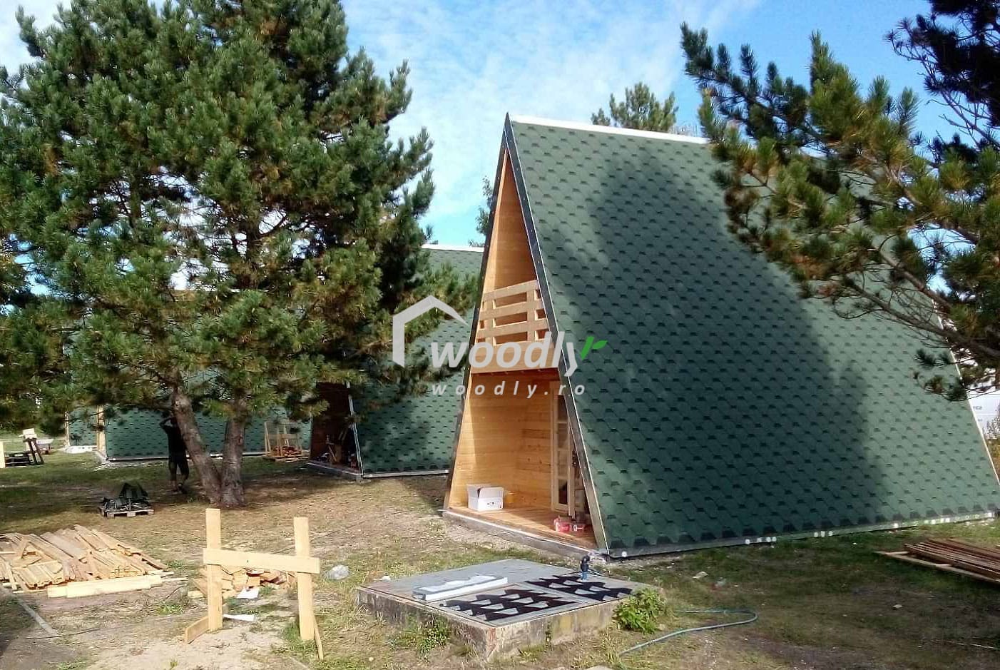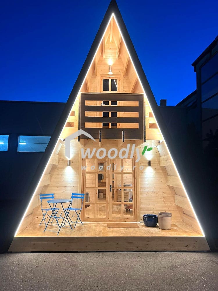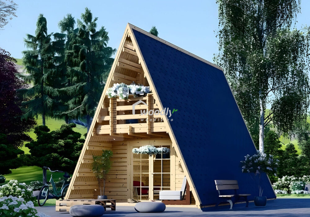 O casa lemn Tip A izolată ușor de asamblat și soluții alternative pentru fundație