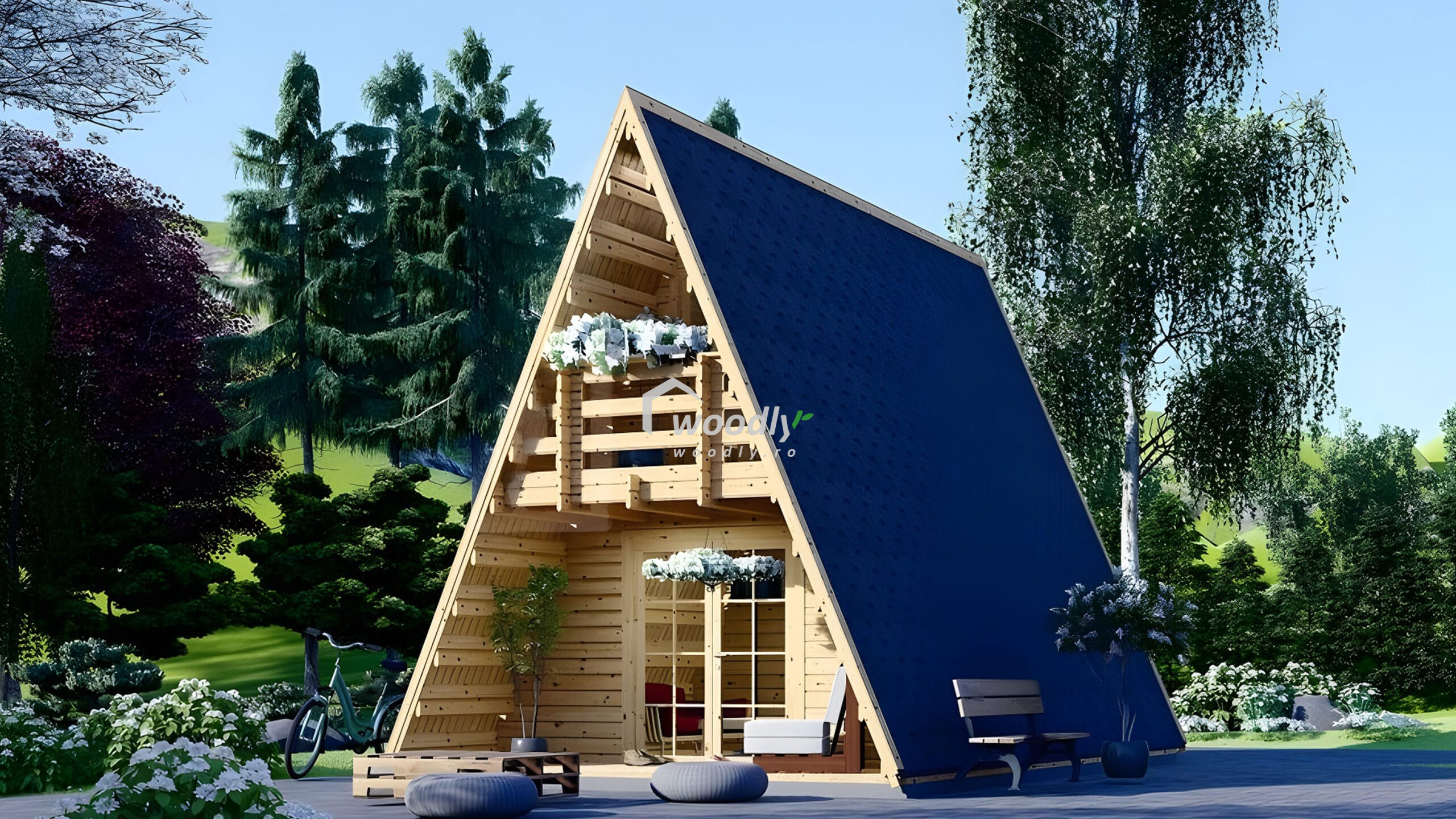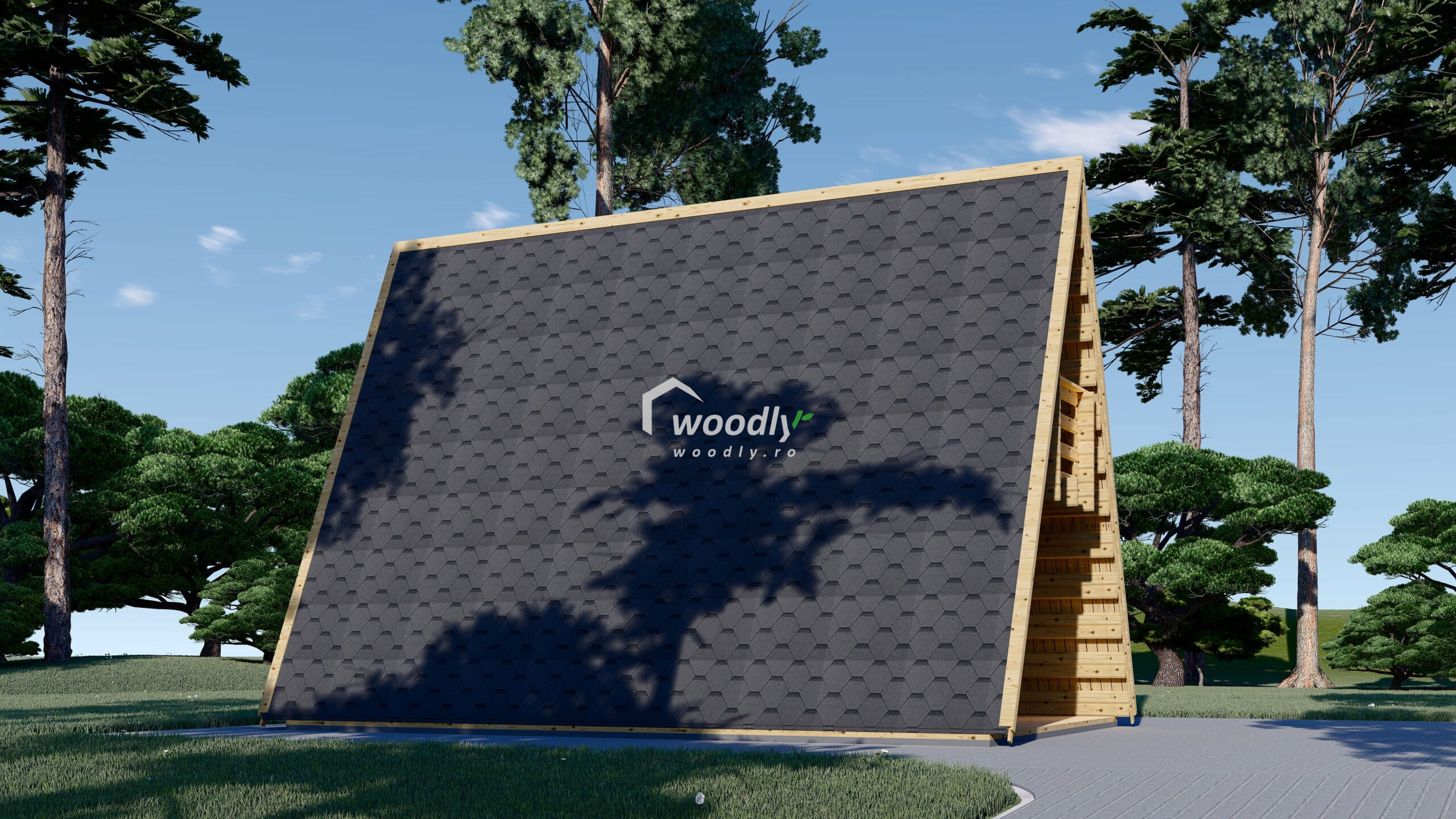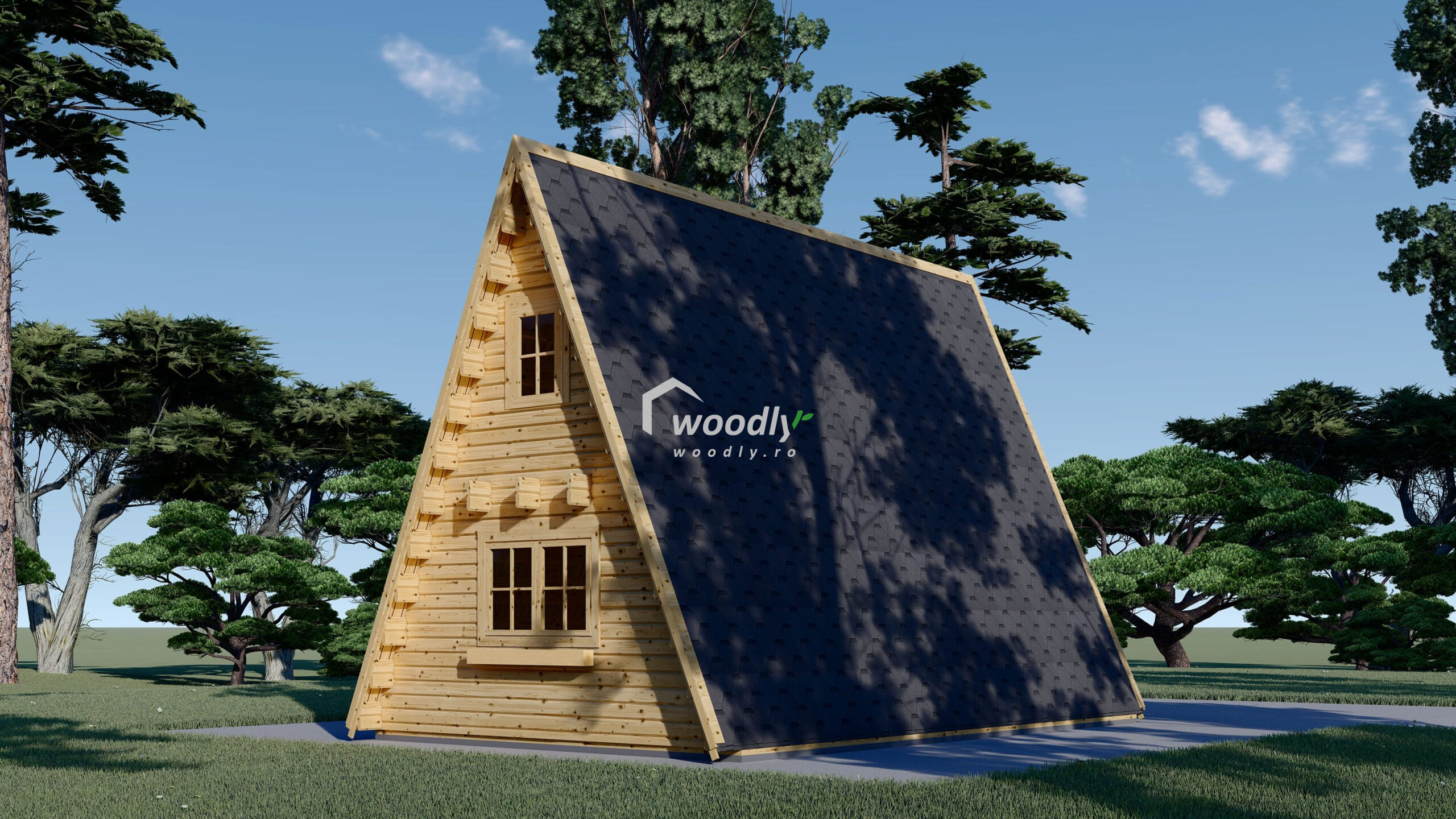 O casa lemn Tip A izolată ușor de asamblat și soluții alternative pentru fundație