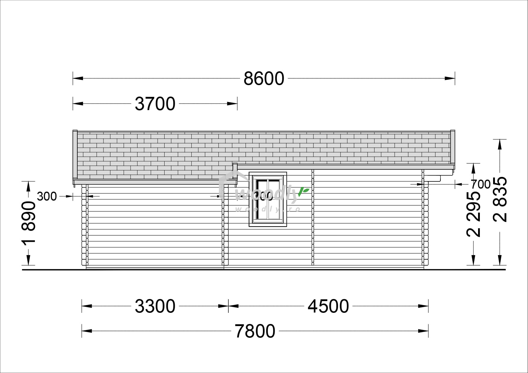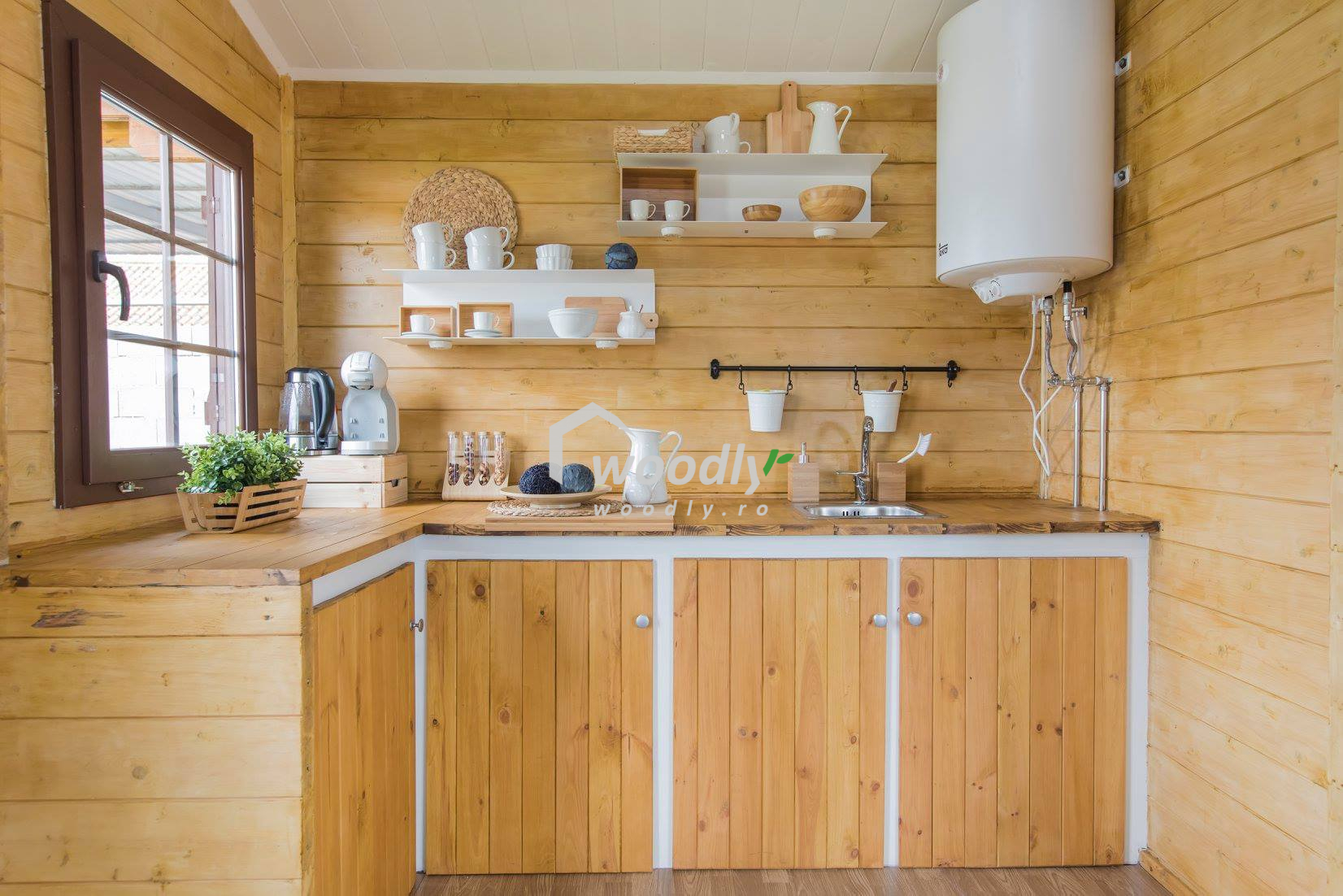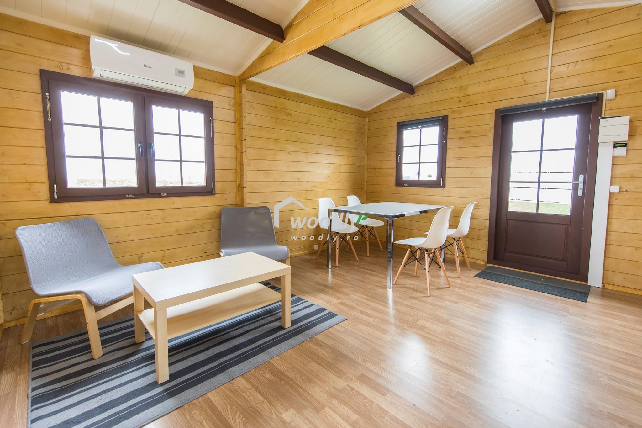 Casă din lemn la cheie, DIANA, modulară, izolată, 44mp, living, 2 dormitoare, 6x8m, perete dublu de 34mm + Izolație + 34mm pin nordic