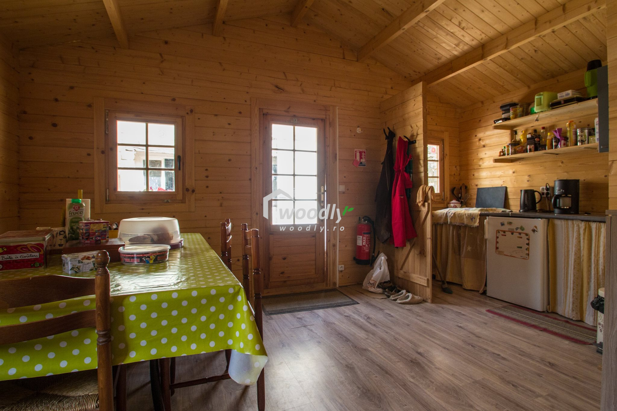 Cu perete dublu de 34 mm + spatiu izolare + 34 mm din lemn de pin nordic, este potrivita pentru o casa de vvacanta atat vara cat si in sezon rece.