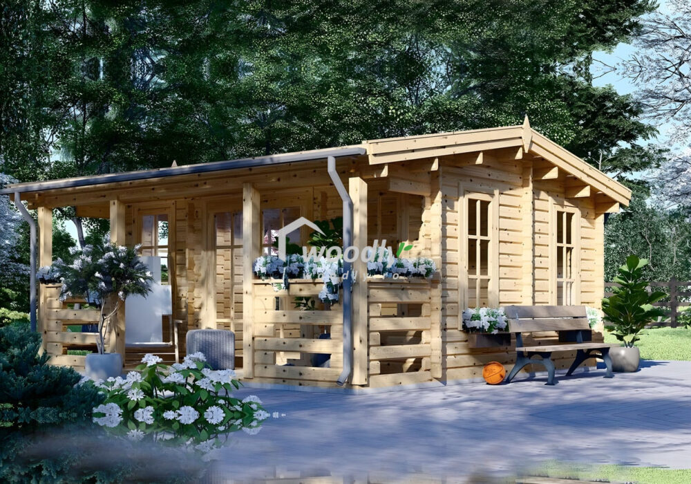 Casă din lemn la cheie ROYAL cu pereți de 44 mm se preteaza pentru weekenduri de vara in natura, birou de gradina sau chiar camera de oaspeti.