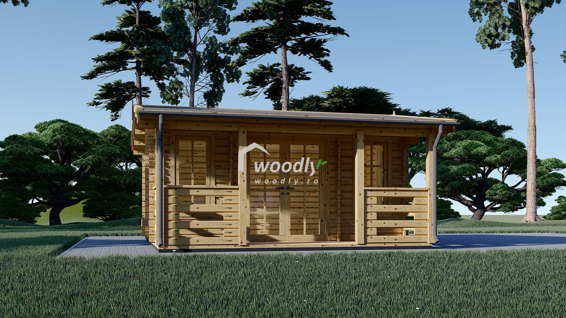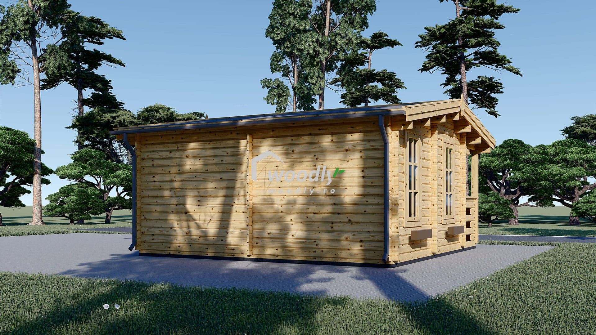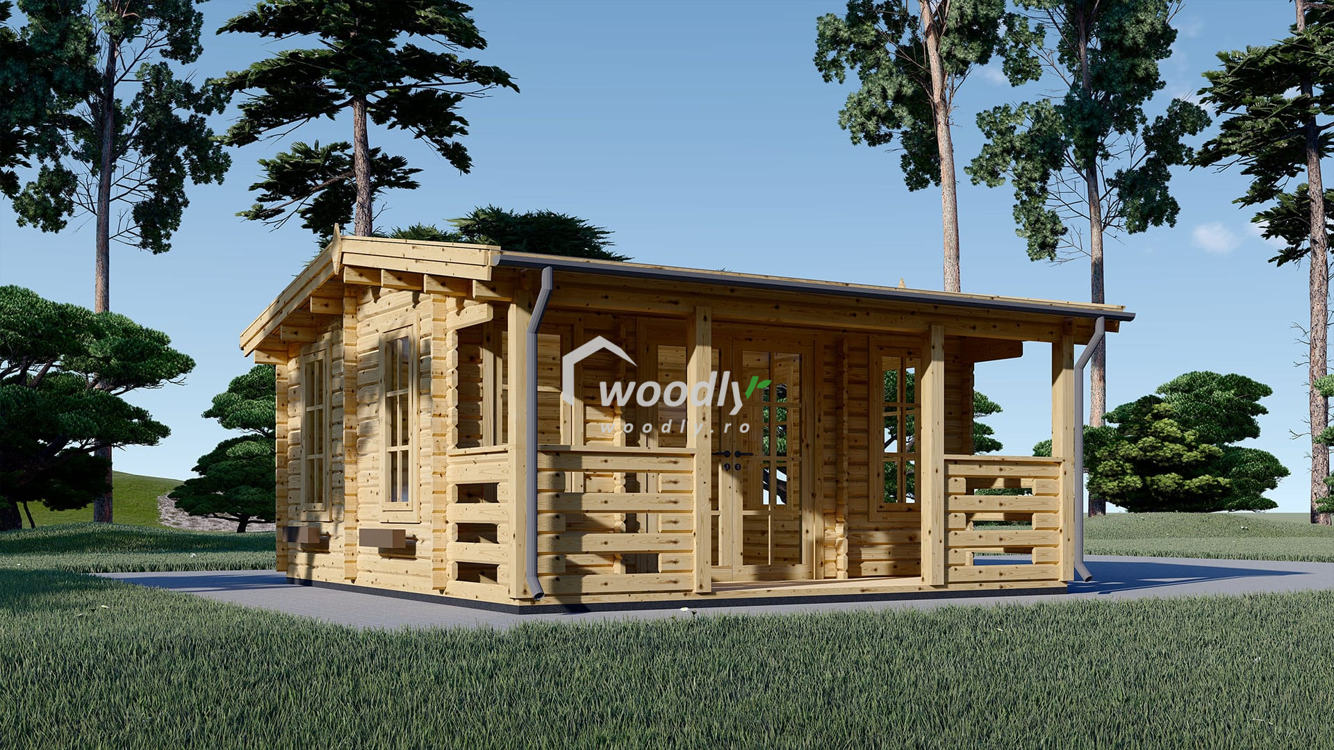- Casă din lemn la cheie, ROYAL, 25mp, 5x5m, 2 camere cu terasă. Montaj realizat in 2 zile de echipa Woodly in Valcea.