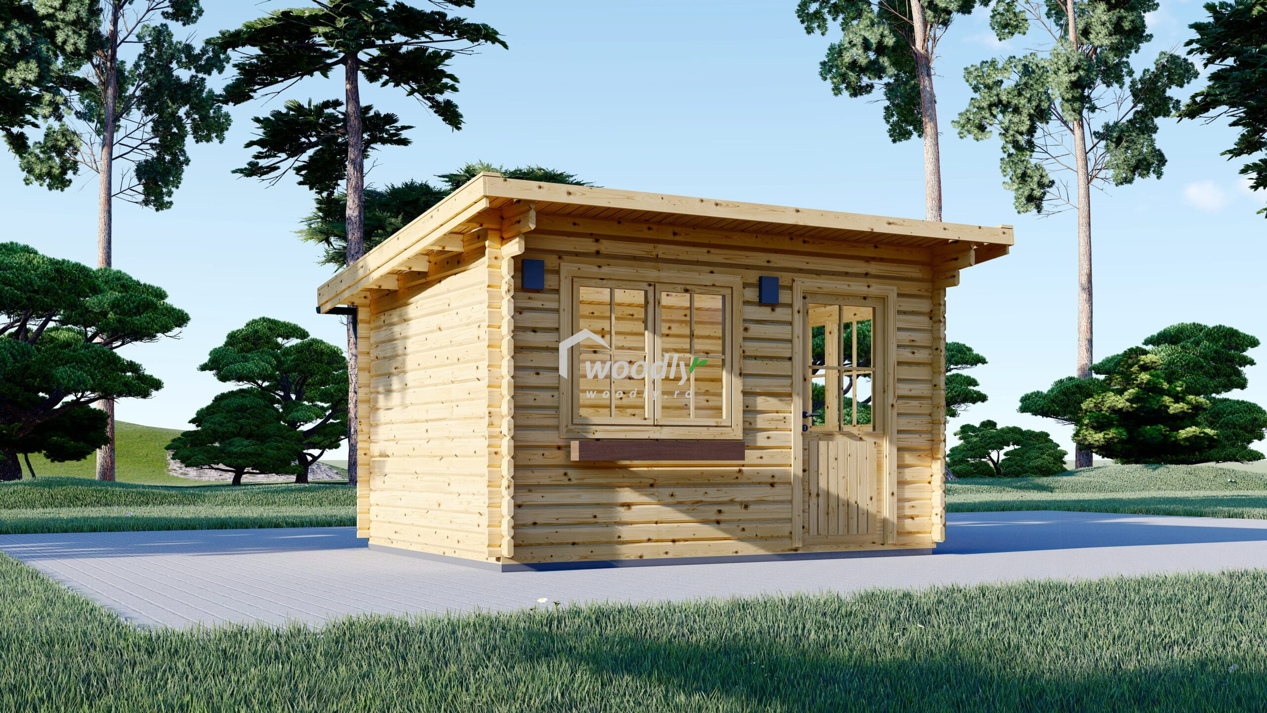 Căsuță de grădină din lemn la cheie, DREUX TP, modulară, 12 mp, acoperiș într-o apă, perete unic de 44mm, 4x3m