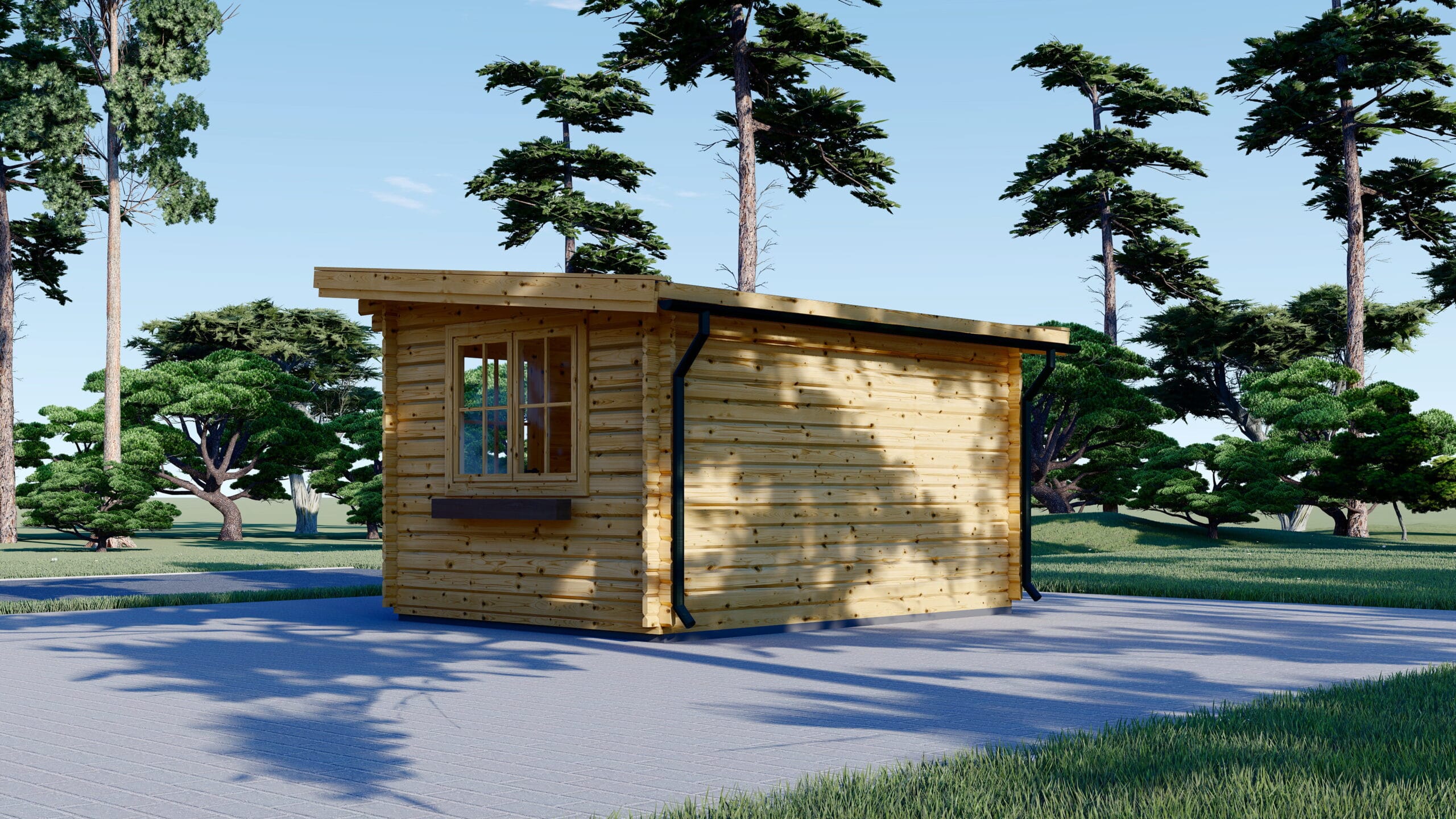 Aspecte esențiale – Căsuță de grădină din lemn cu acoperiș într-o apă DREUX TP