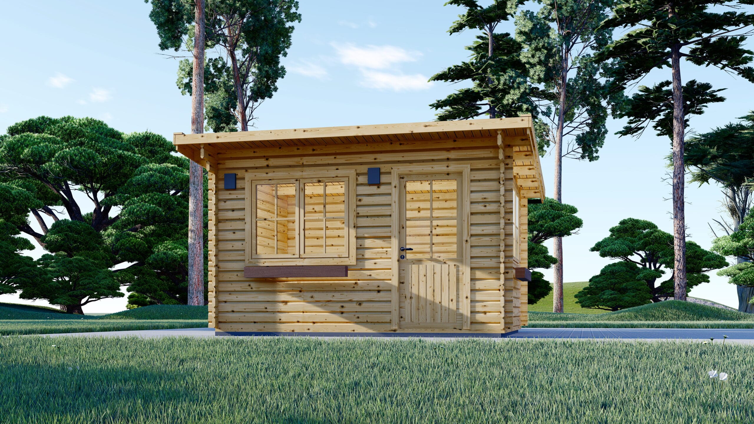 • Pereți din lemn de 66 mm: îmbunătățesc considerabil durabilitatea și izolația termică și fonică. Sunt ideali pentru cabane, anexe sau birouri de grădină.