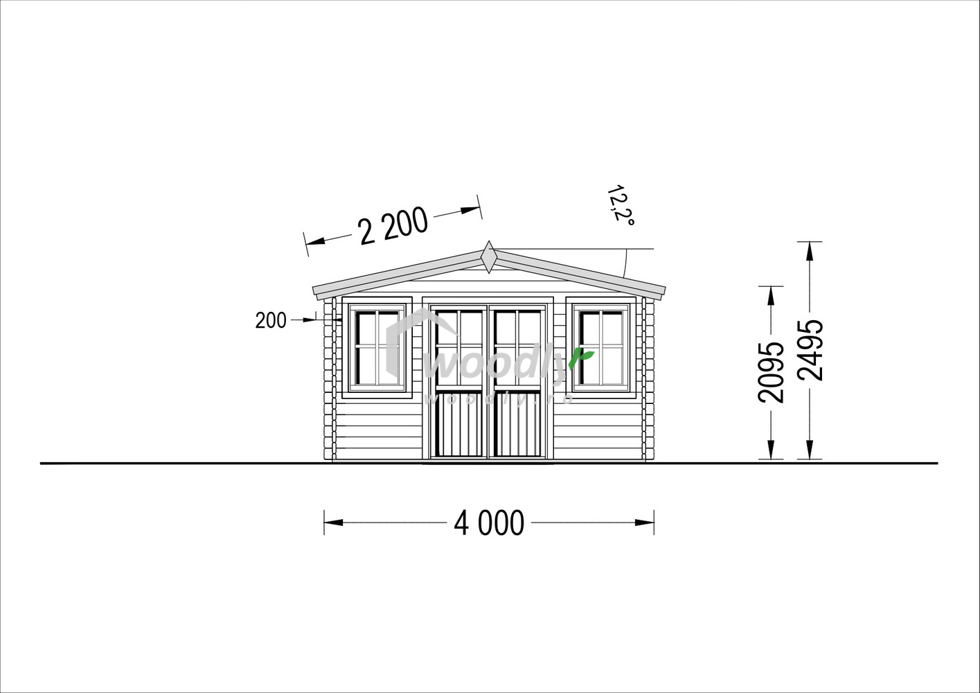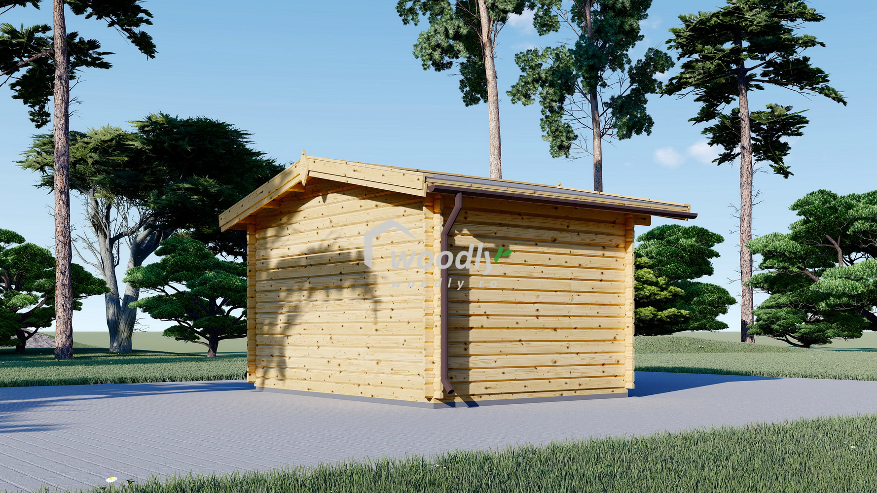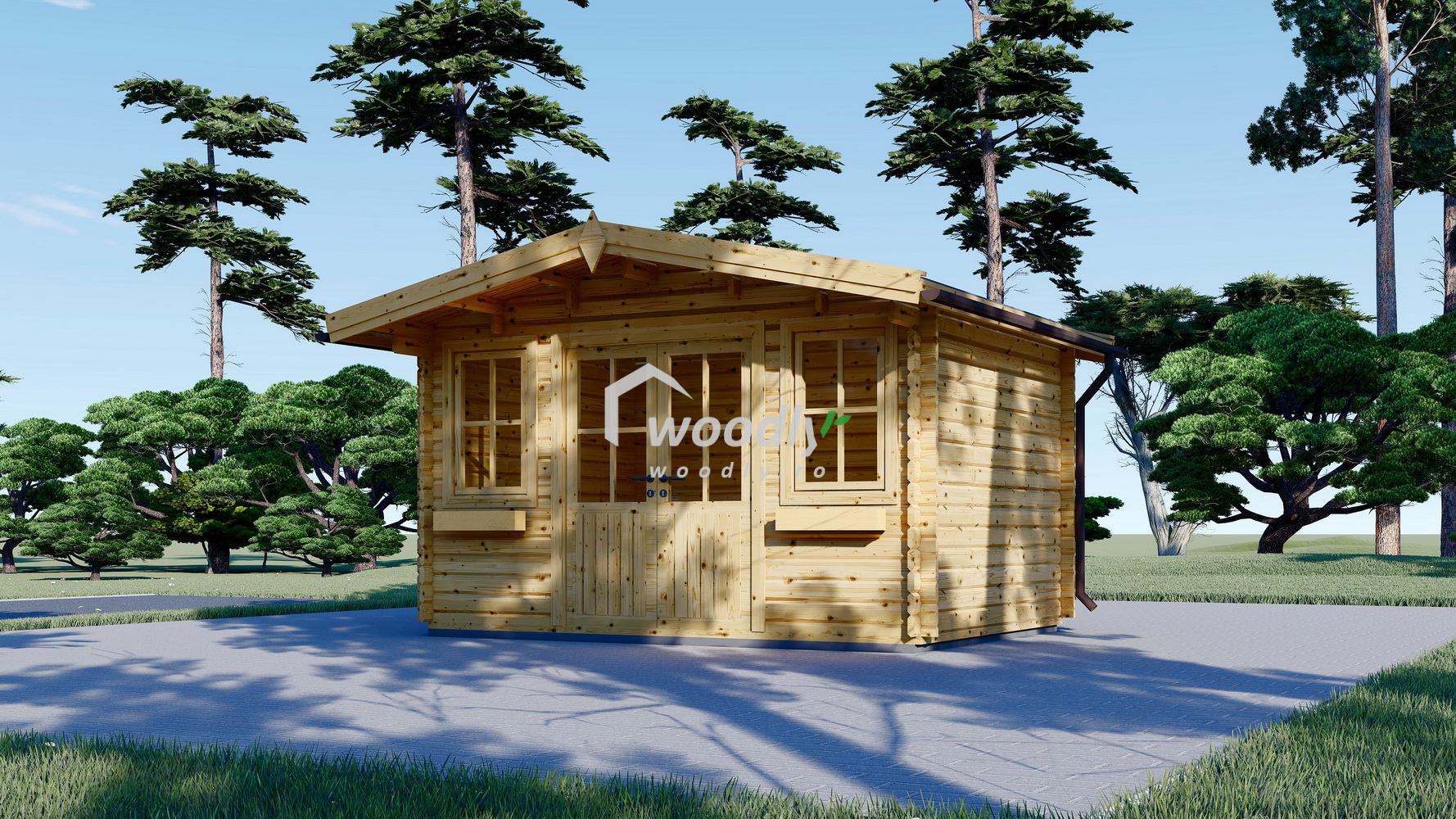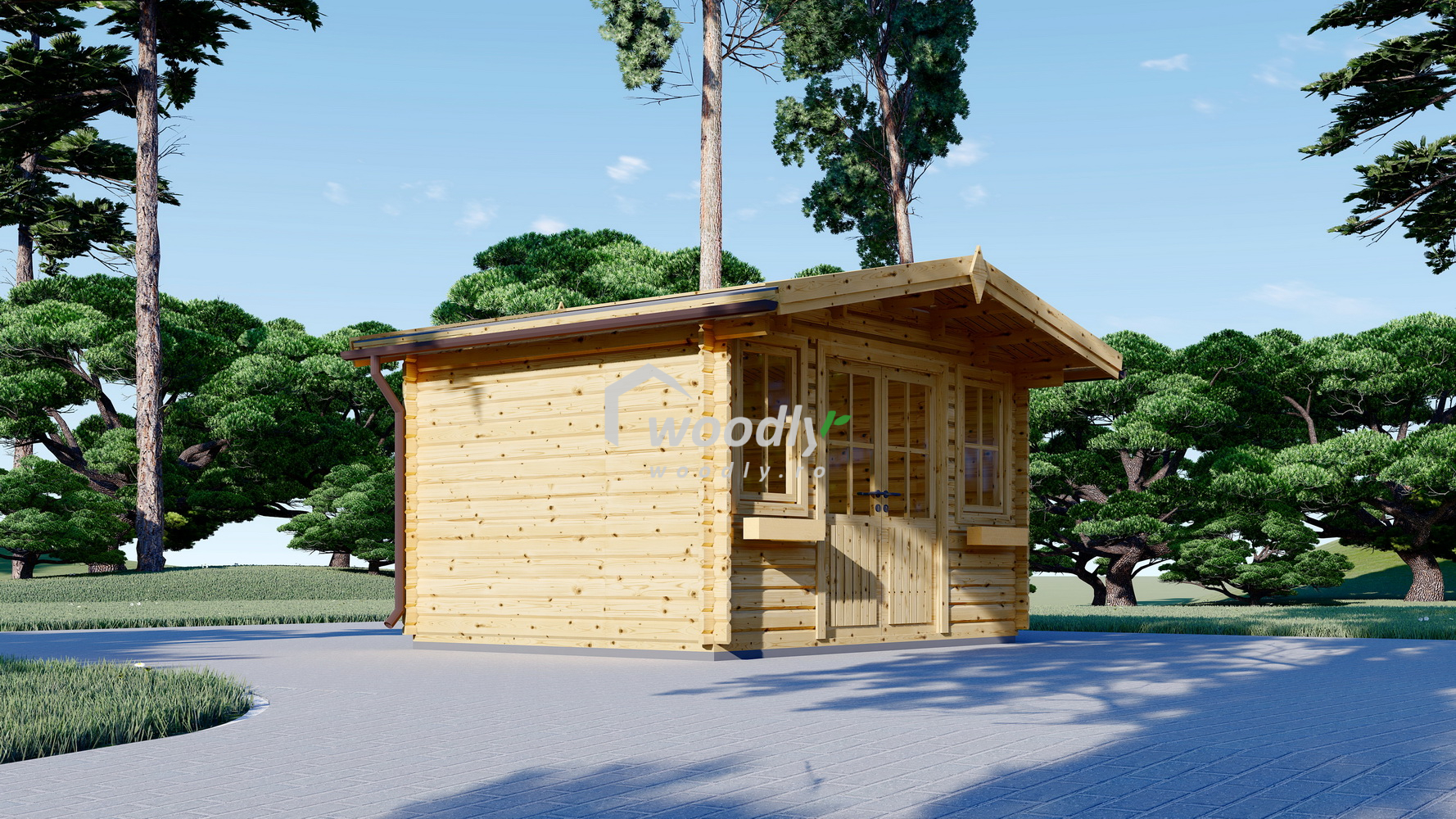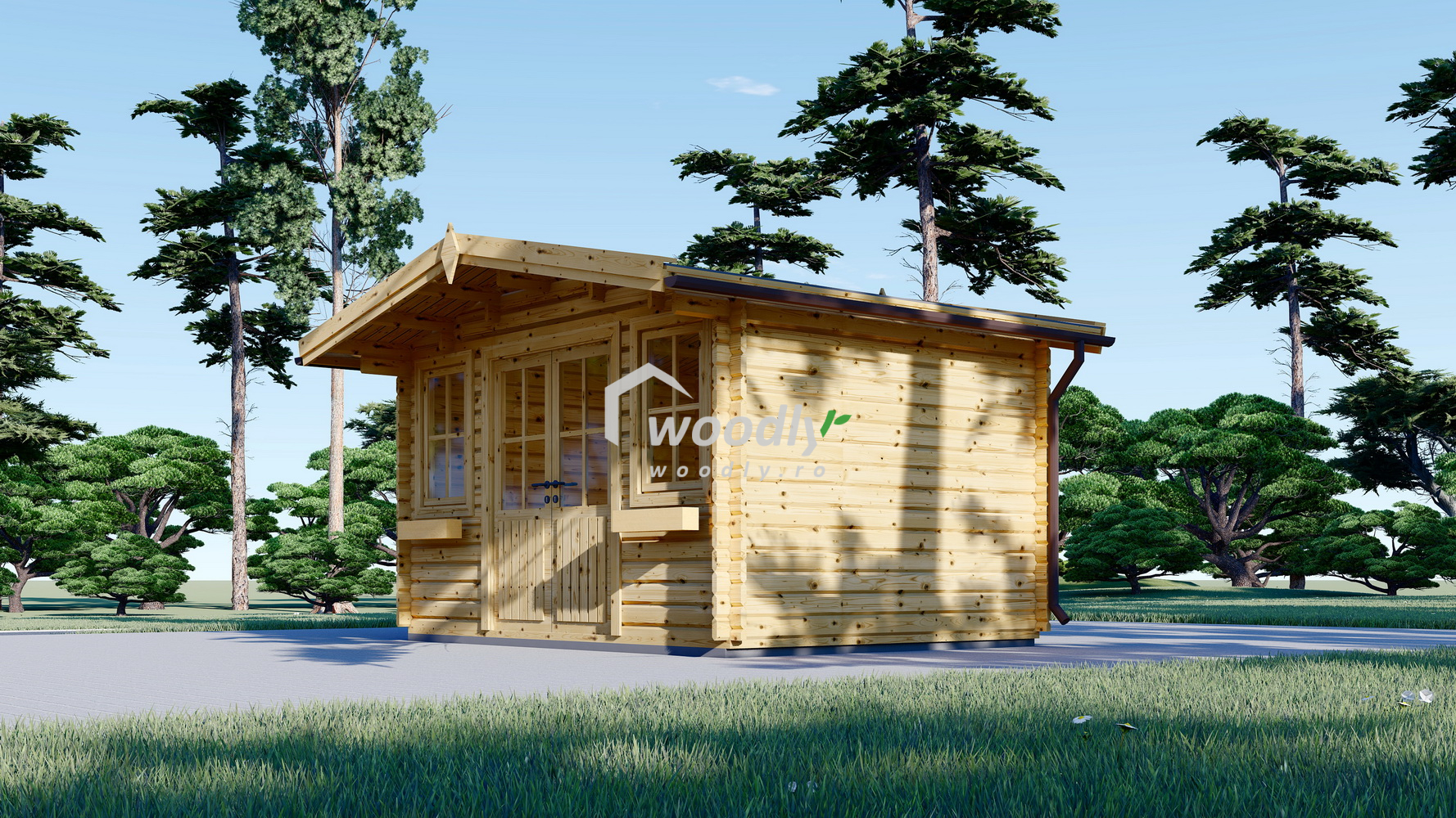 Căsuță de grădină din lemn la cheie, OLYMP, modulară, 12mp, o camera, 4x3m, perete unic 44mm