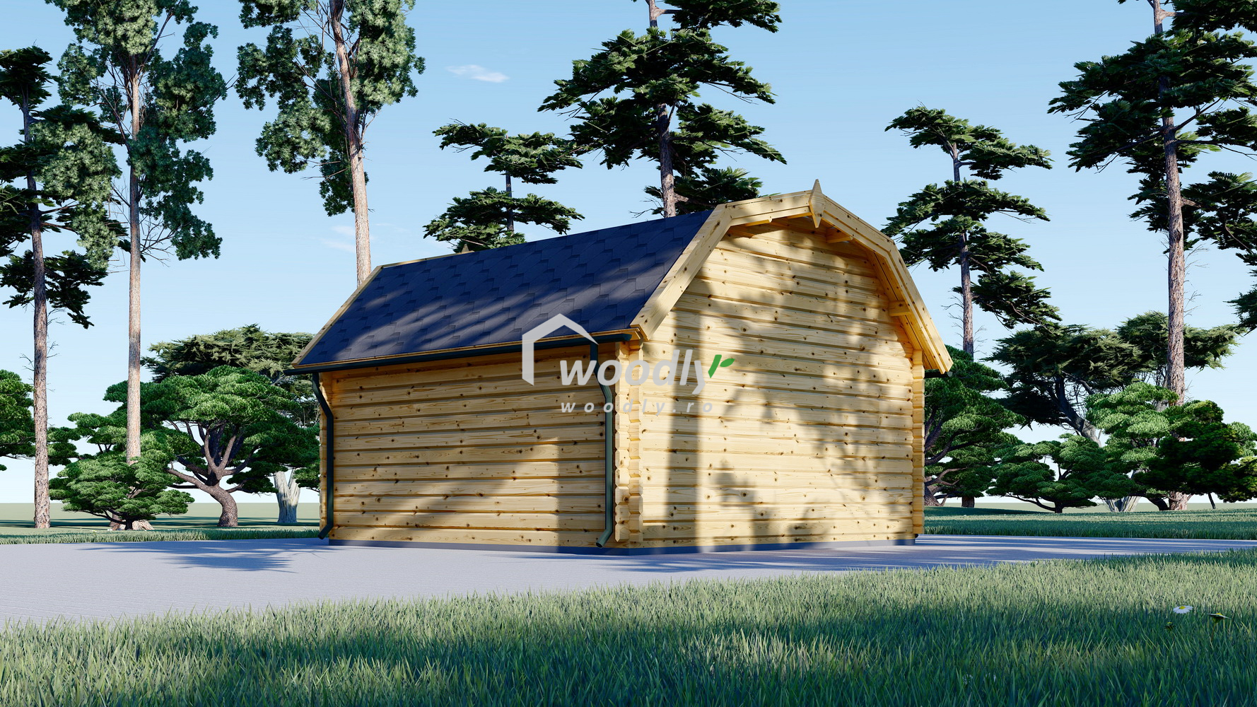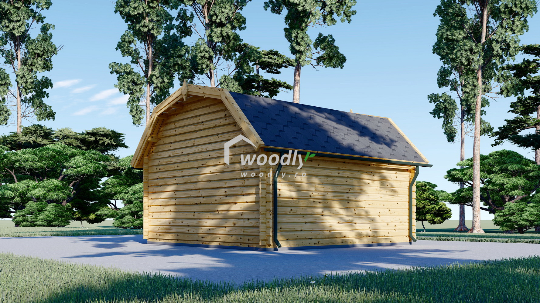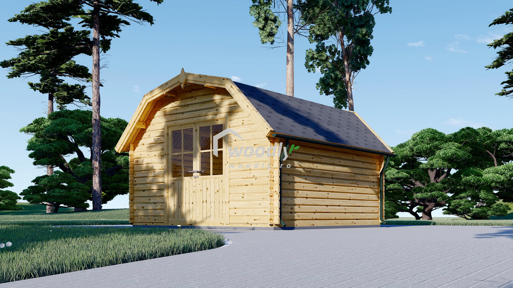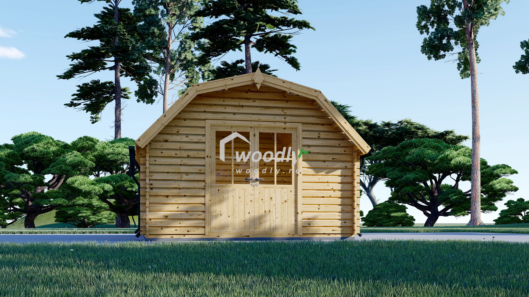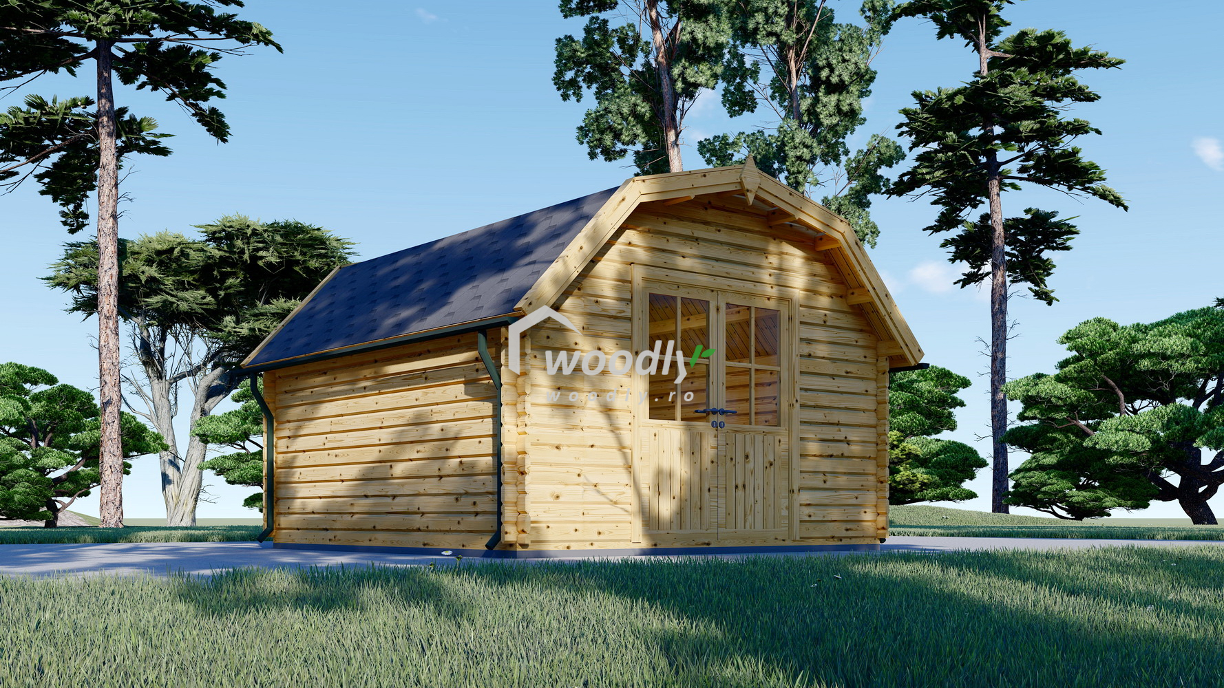 Căsuța de grădină ORLANDO, 16mp, cu acoperiș în stil hambar, uși duble vitrate și consolă de acoperiș, oferă un spațiu elegant și versatil pentru atelier, birou sau relaxare. Construcția robustă din lemn garantează durabilitatea și un design modern la un preț accesibil.
