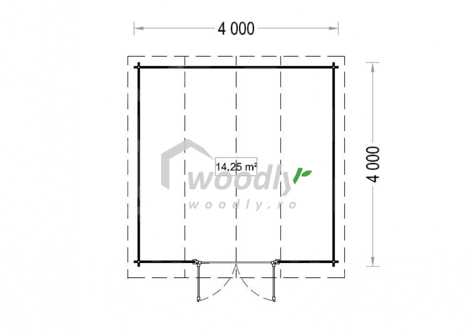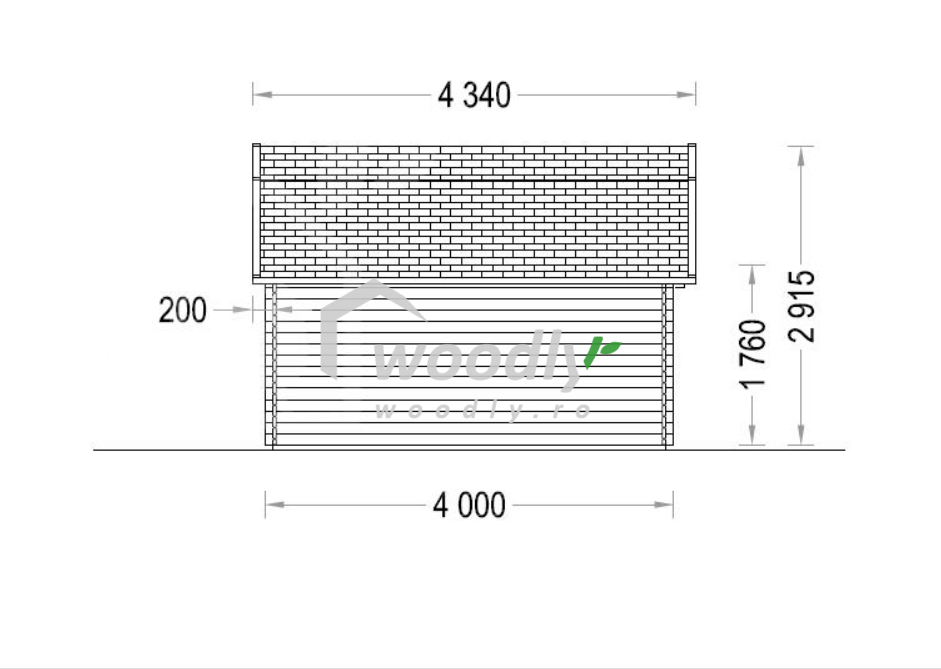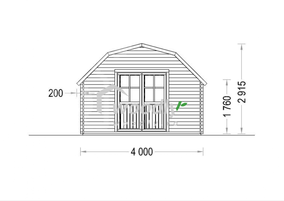 Căsuță de grădină din lemn la cheie, ORLANDO, modulară, 16mp, o camera, 4x4m, perete unic 34mm