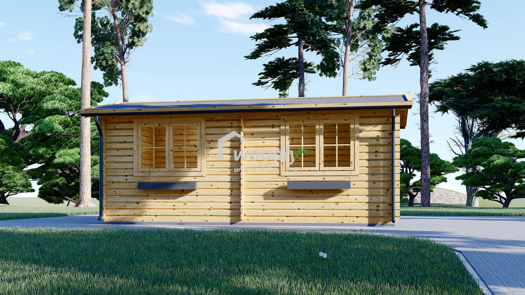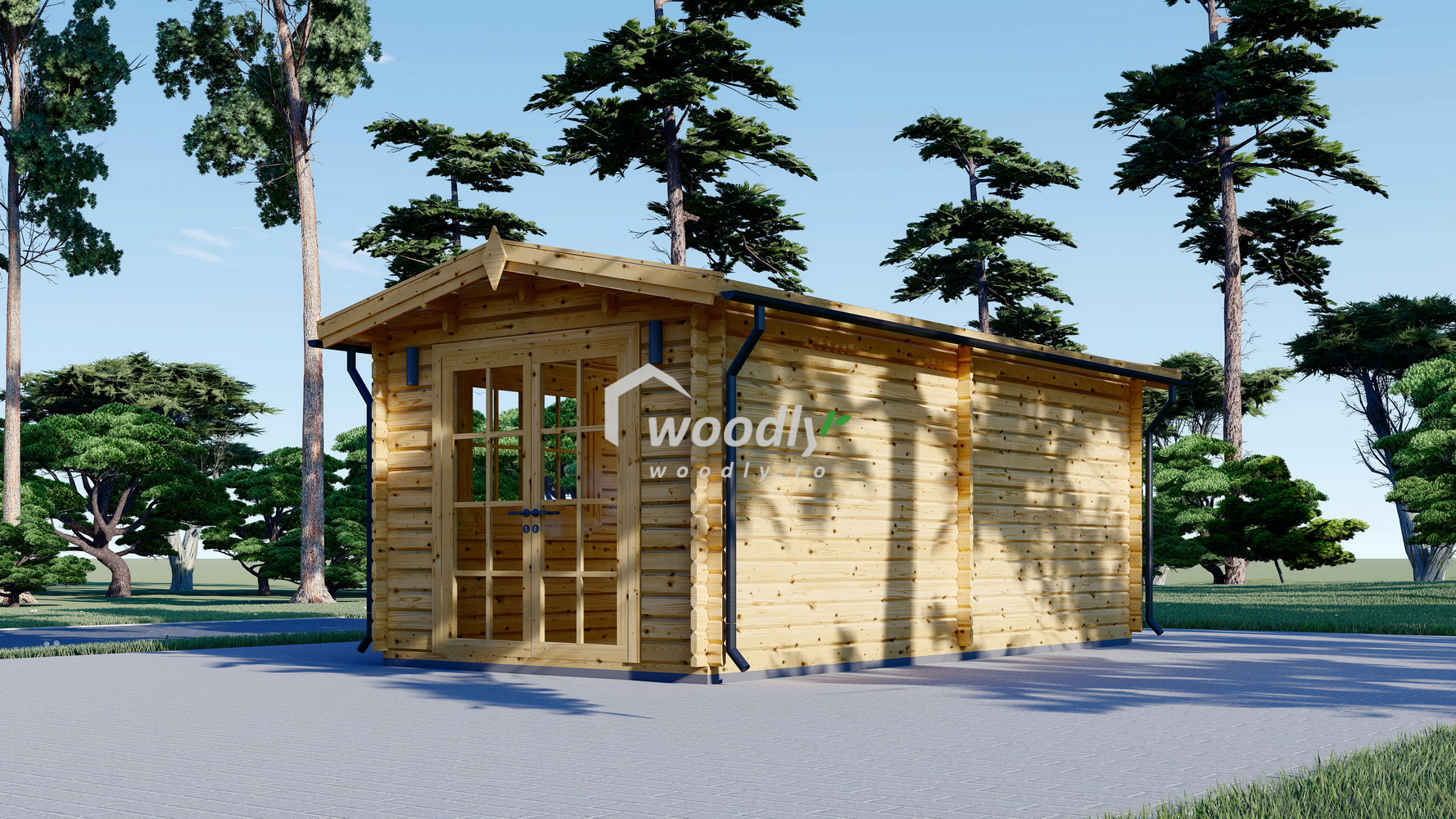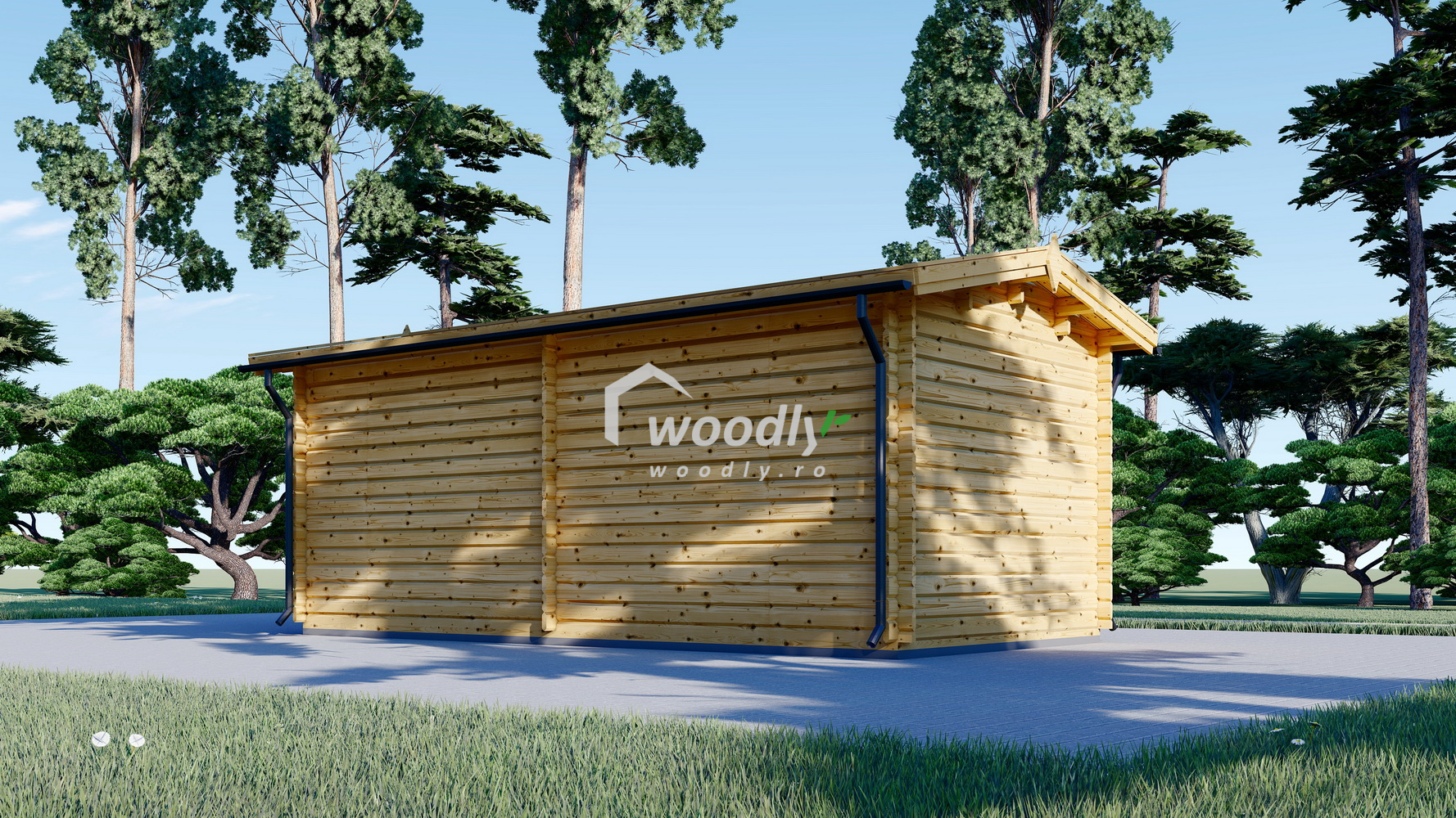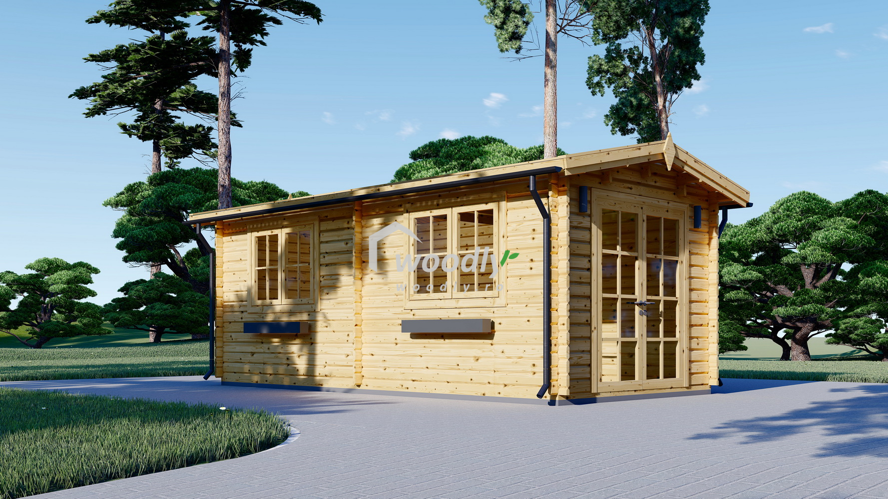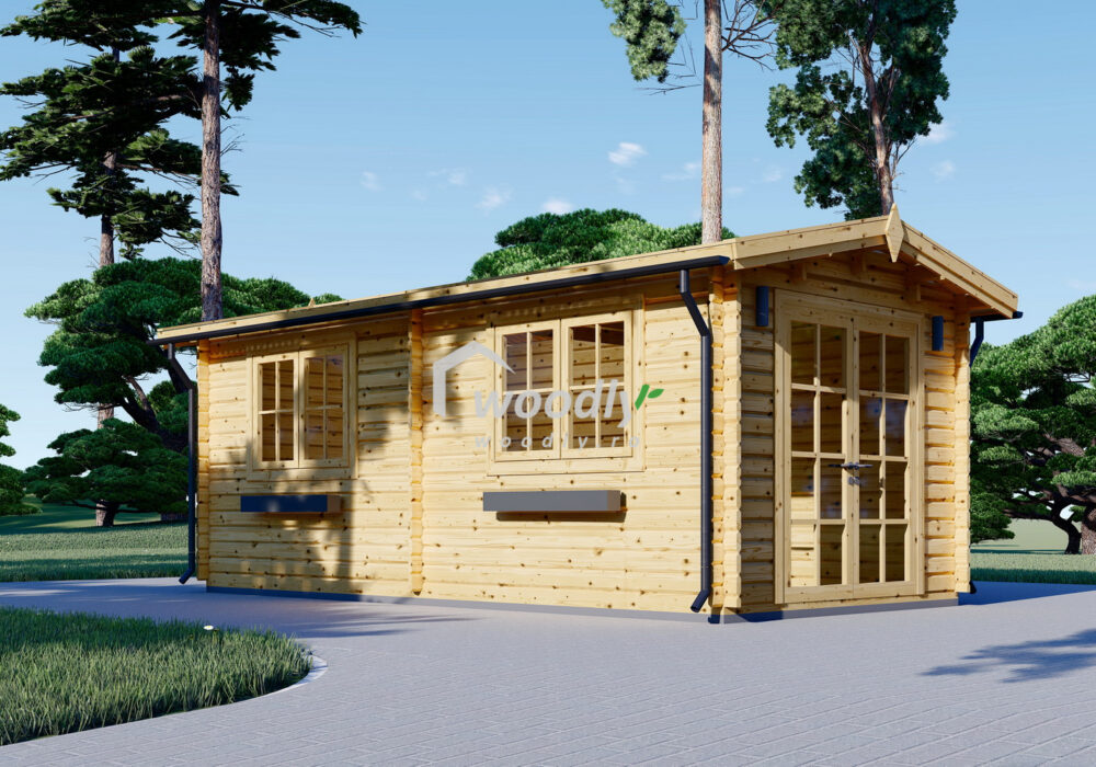 Căsuță de grădină din lemn la cheie, STRONGHOLD, modulară, 18mp, o camera, 3x6m, perete unic 44mm, Pin Nordic