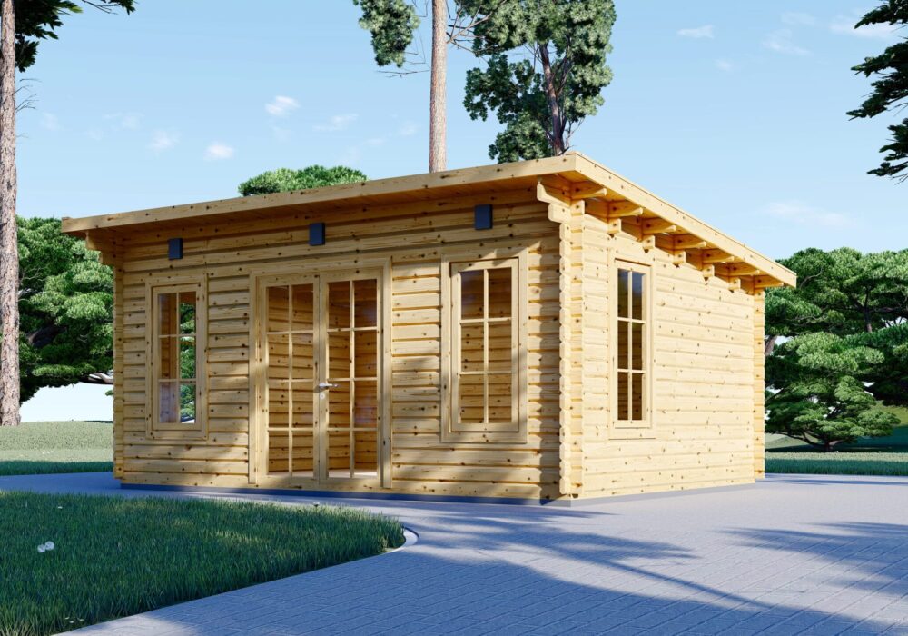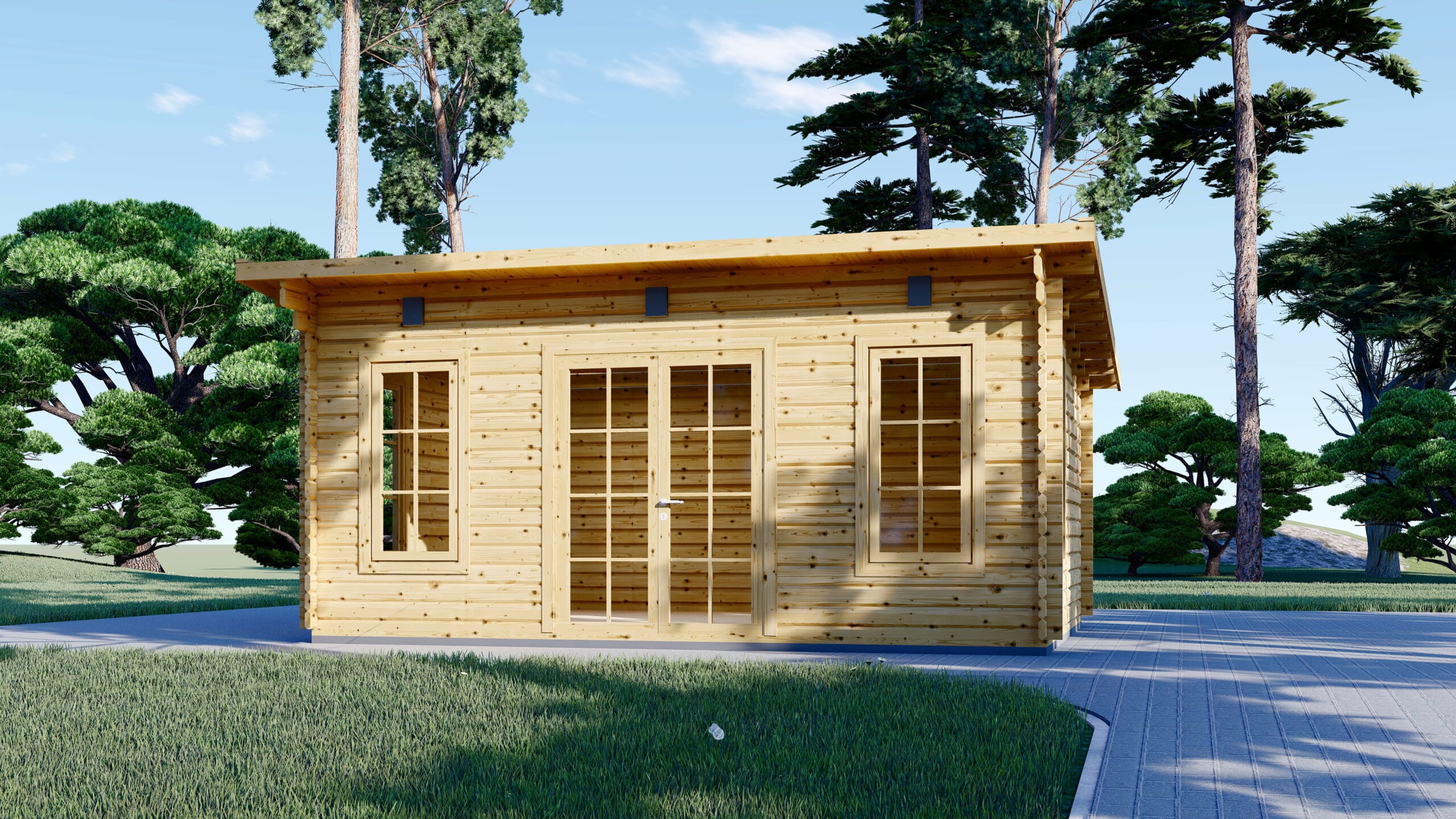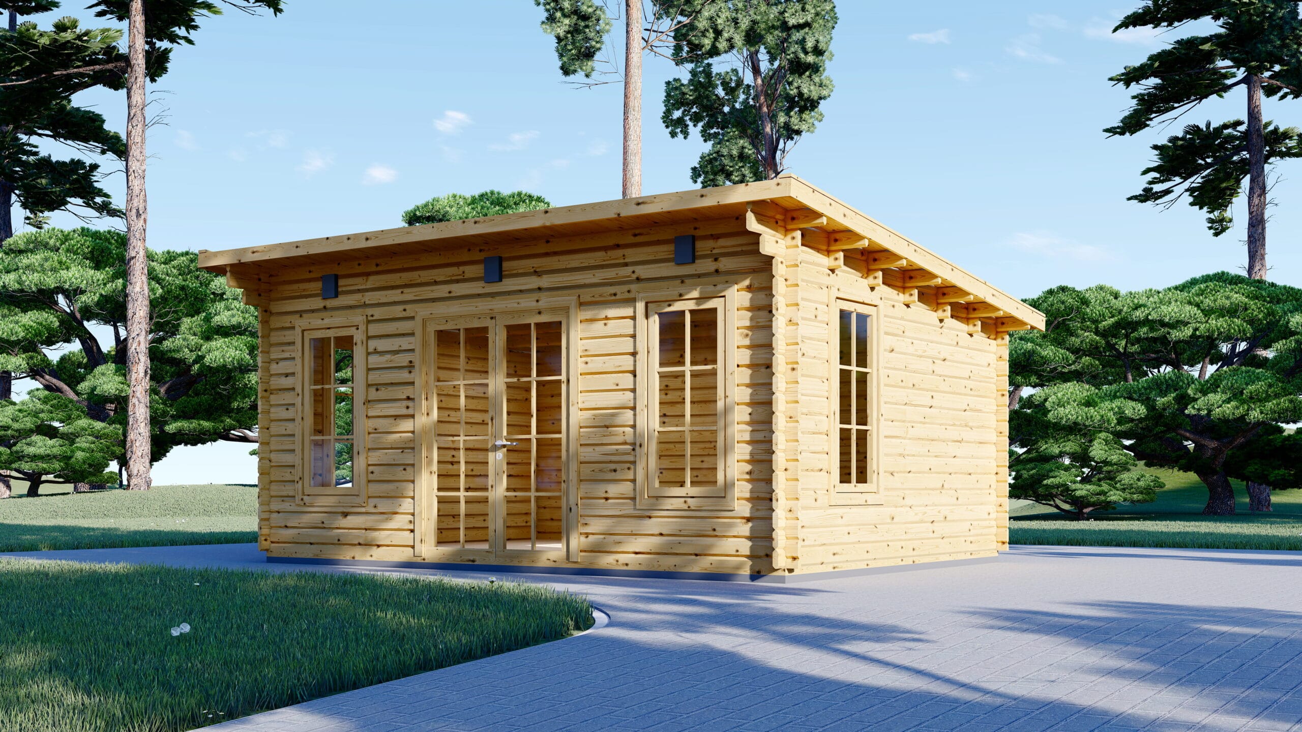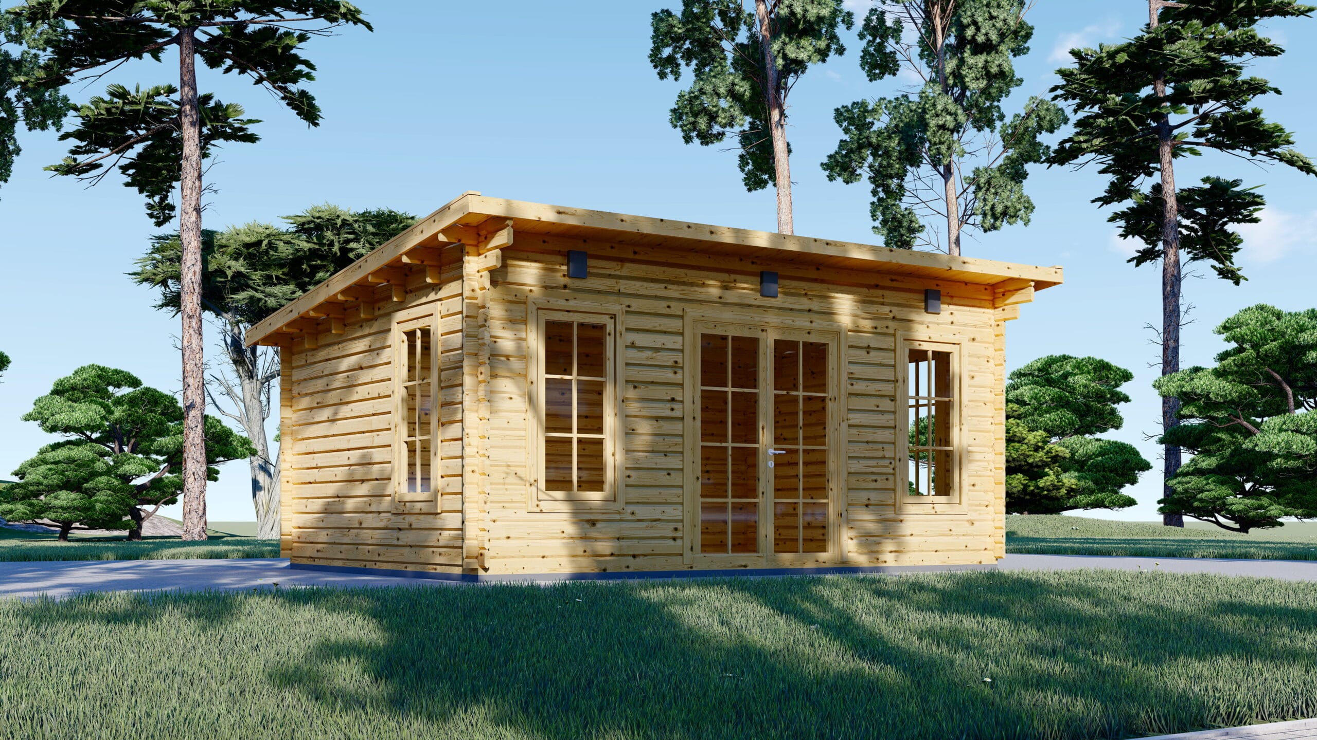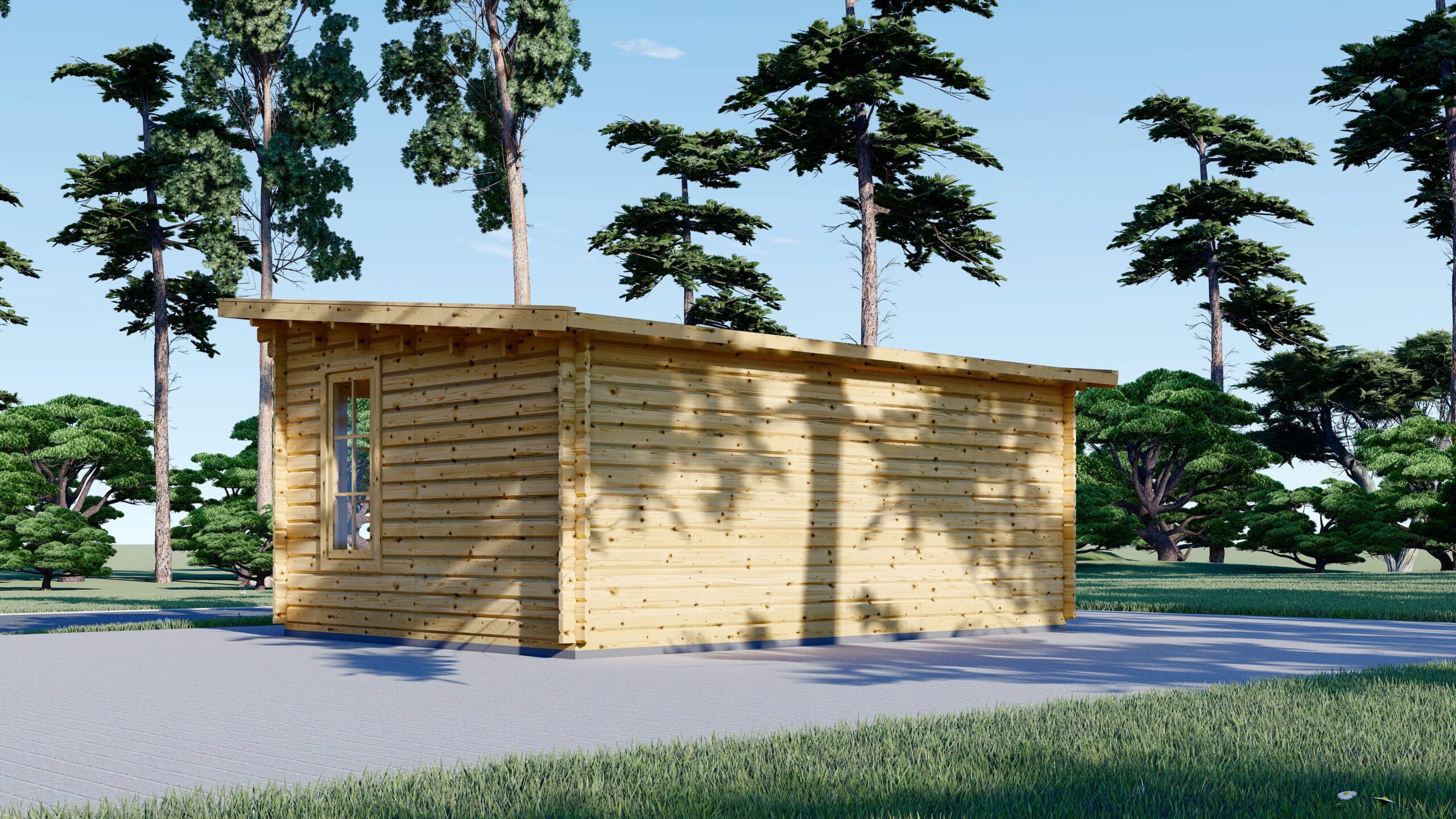 Căsuță de grădină din lemn la cheie, ESSEX, modulară, izolată, 20 mp, 1 camera, acoperis intr-o apa, perete unic de 44mm, 5x4m