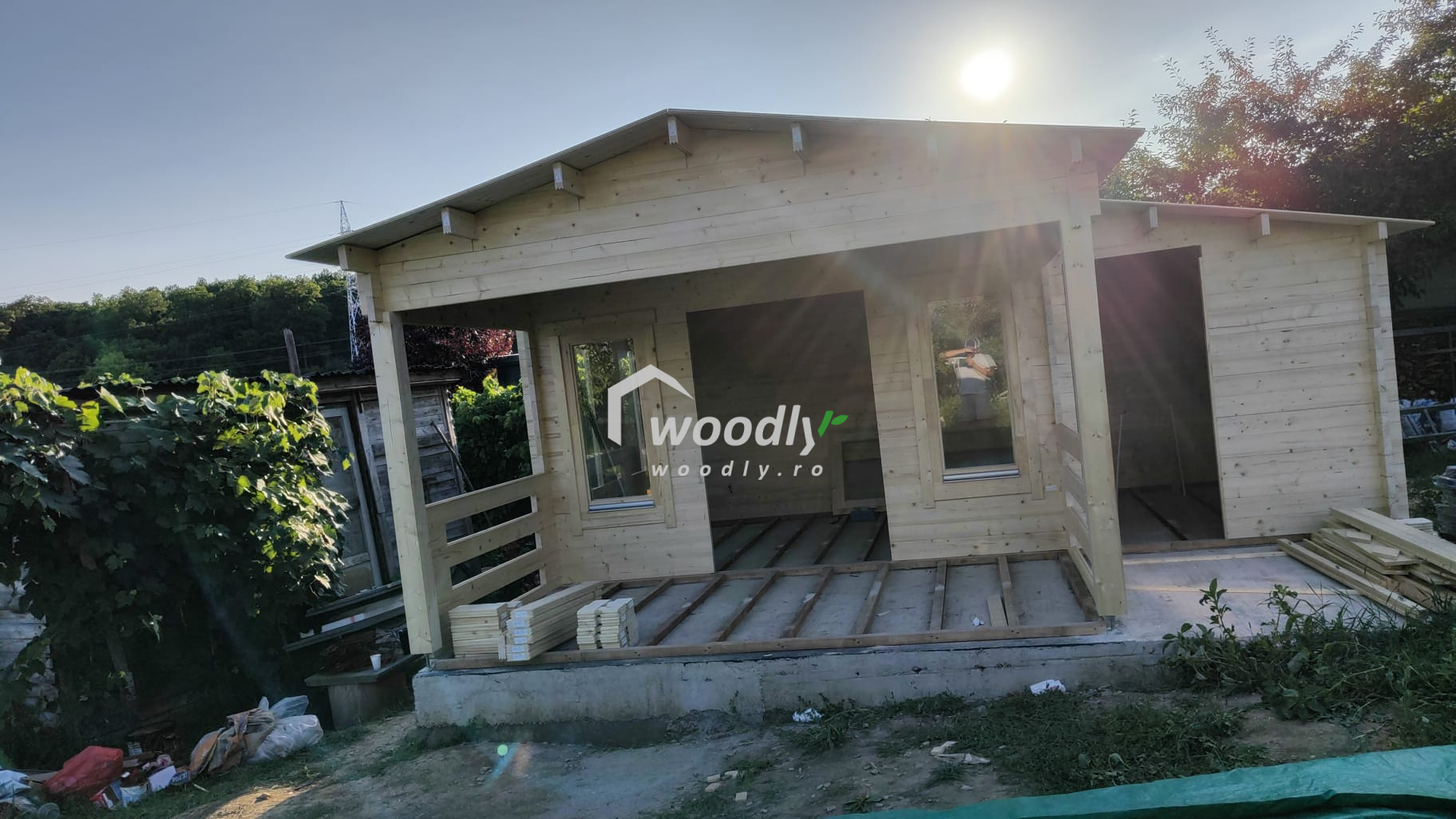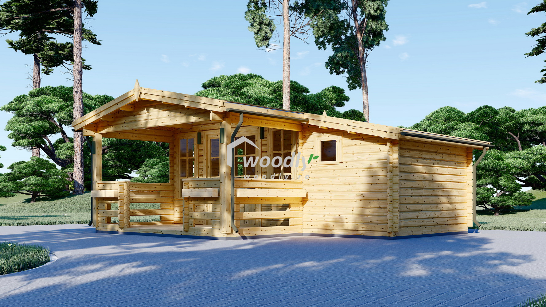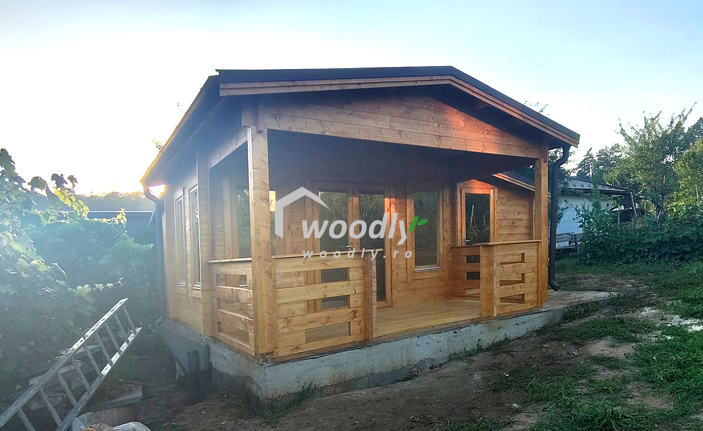 Căsuță de grădină din lemn la cheie, ISLA, modulară, 25 mp, 2 camere, terasa acoperita, perete unic de 44mm, 6x5m
