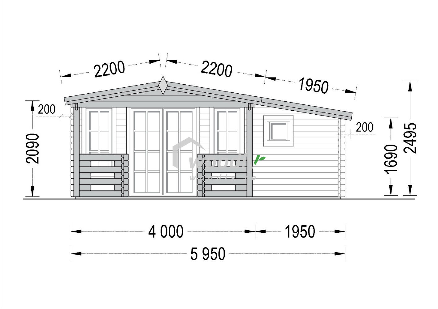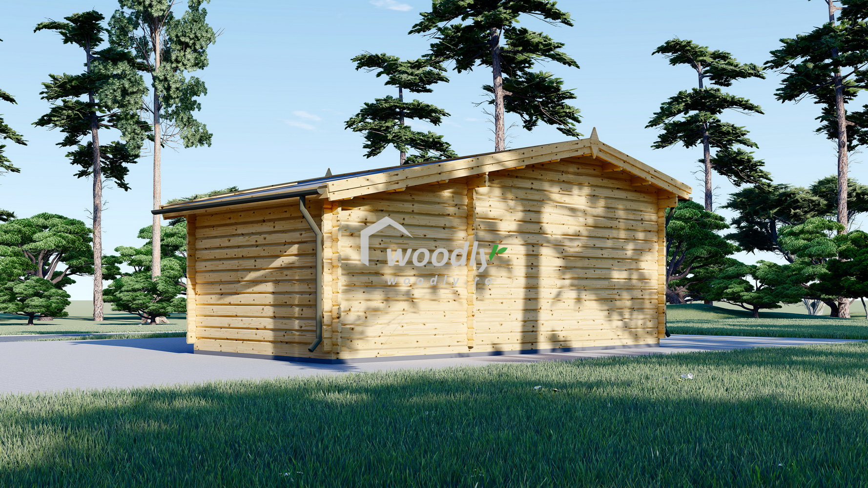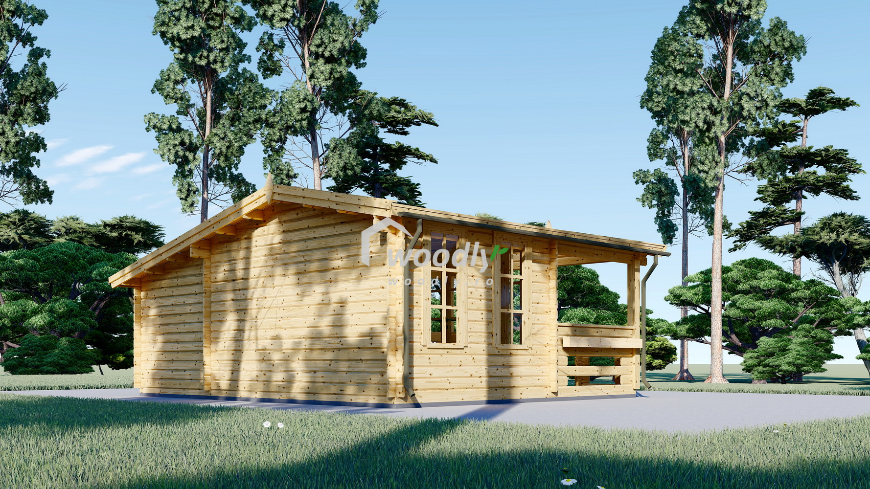 Căsuță de grădină din lemn la cheie, ISLA, modulară, 25 mp, 2 camere, terasa acoperita, perete unic de 44mm, 6x5m