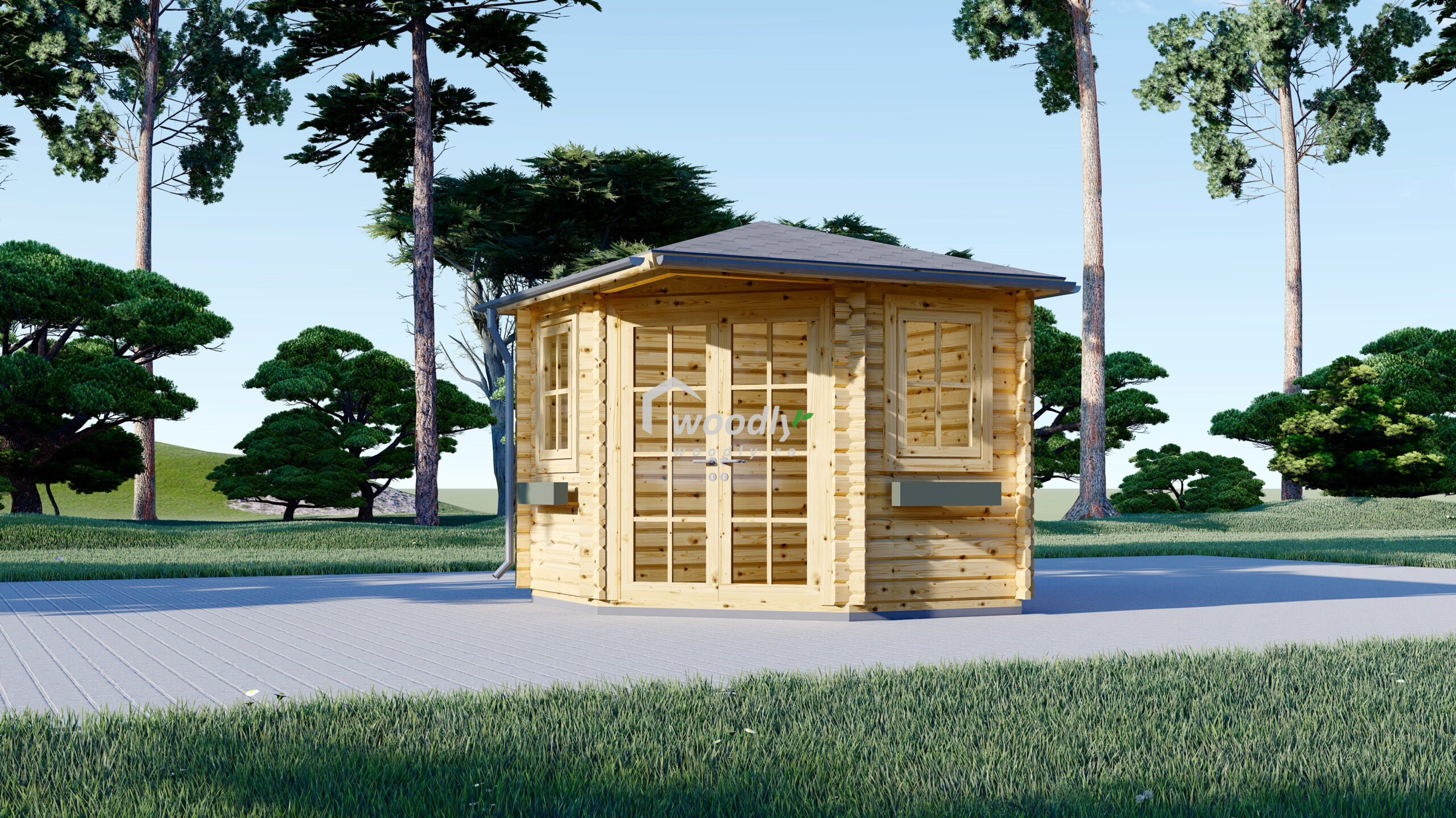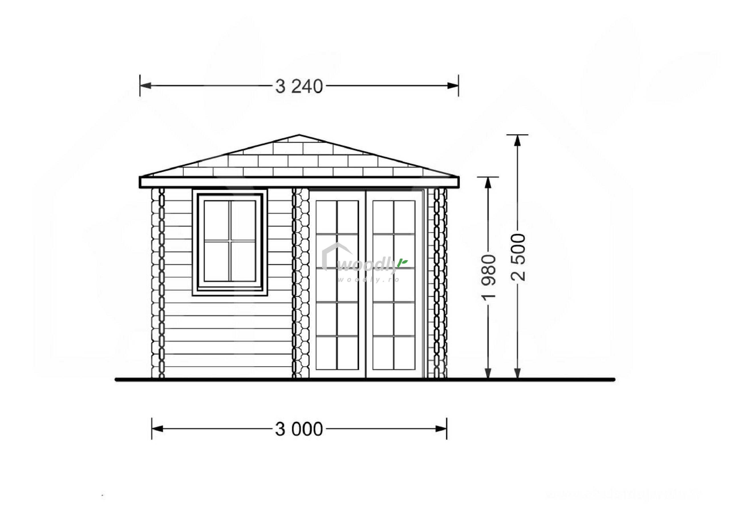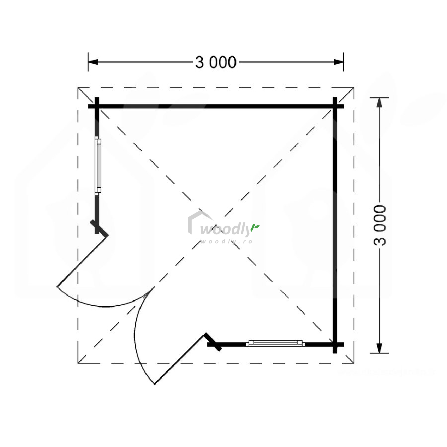 Căsuță de grădină din lemn la cheie, AIDA, modulară, 9 mp, perete unic de 28mm, 3x3m,