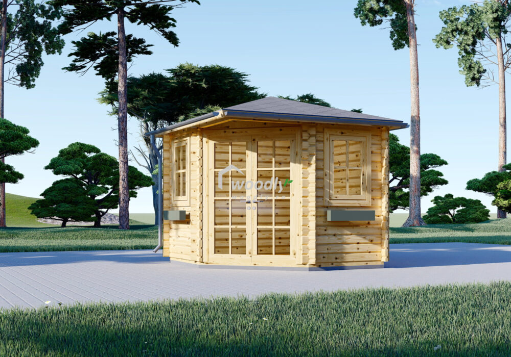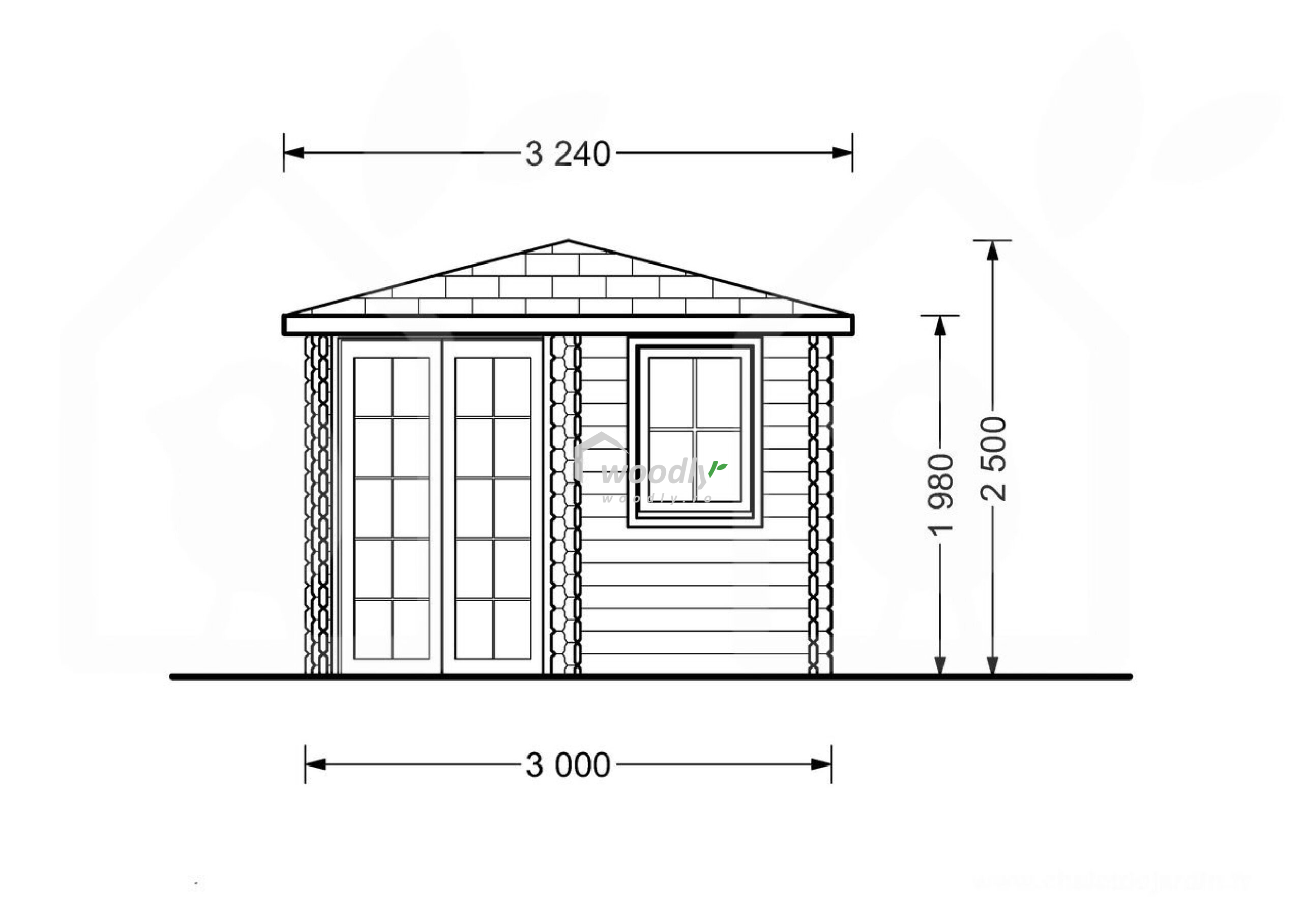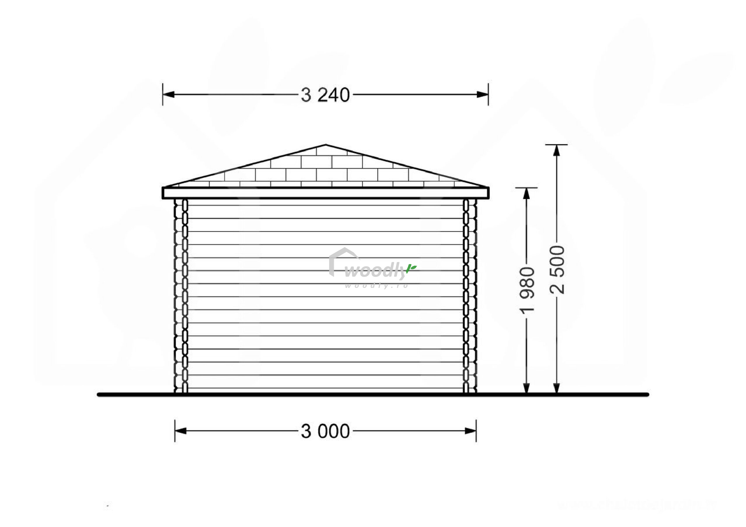 Căsuță de grădină din lemn la cheie, AIDA, modulară, 9 mp, perete unic de 28mm, 3x3m,