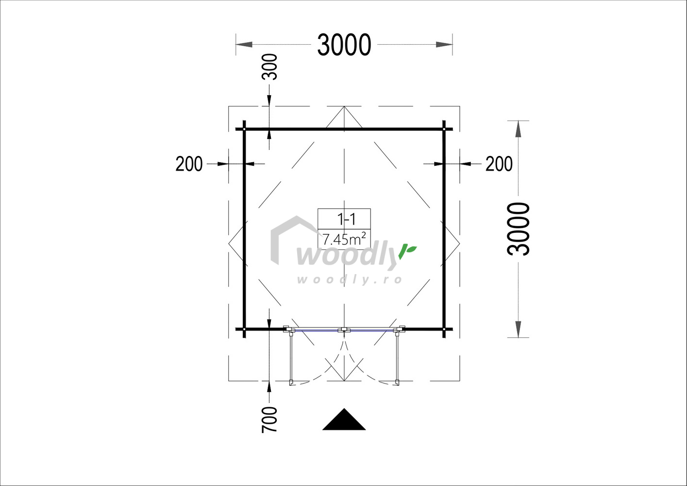 Căsuță de grădină din lemn la cheie, PETER, modulară, 9mp, o camera, acoperis prelungit, 3x3m, perete unic 34mm, Pin Nordic
