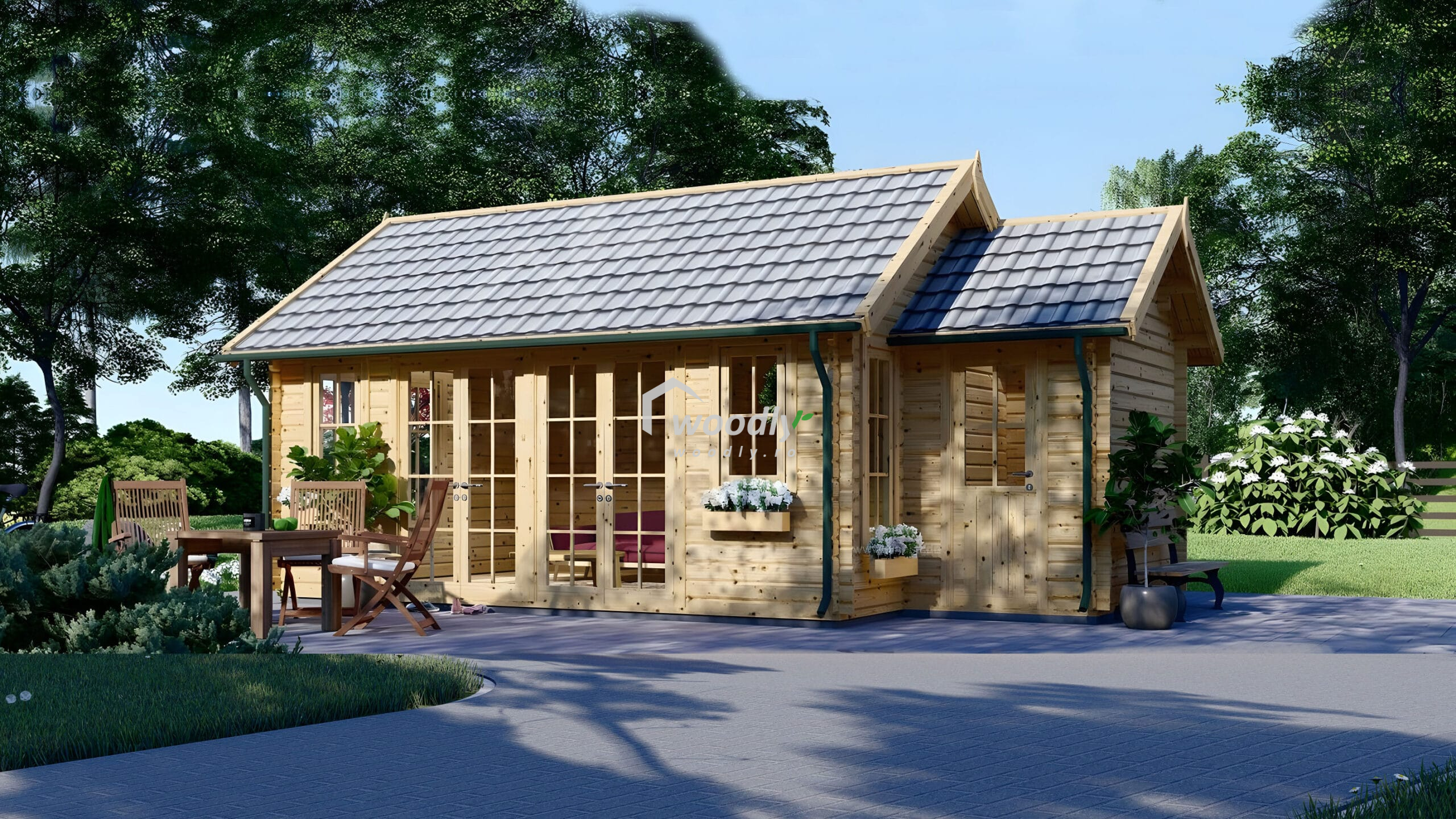 Cu un spațiu generos de 28 mp, căsuța de grădină ELLA poate fi transformată în orice ai nevoie – fie un loc de relaxare în grădină, un birou de lucru de acasă, un atelier creativ sau un spațiu de depozitare pentru echipamentele și accesoriile de grădină. Datorită designului inteligent și compartimentării eficiente, această căsuță este versatilă și adaptabilă oricărei nevoi.