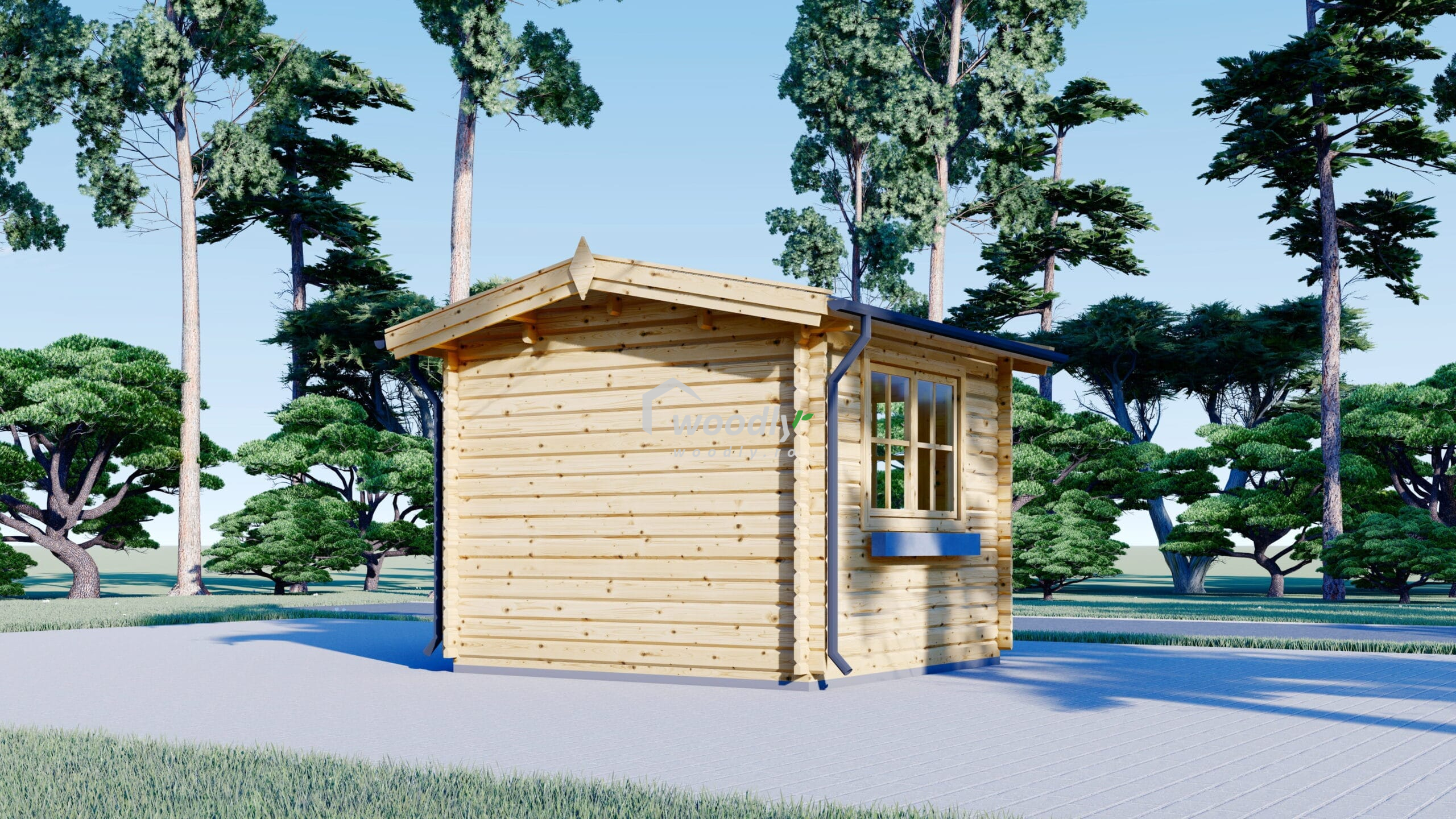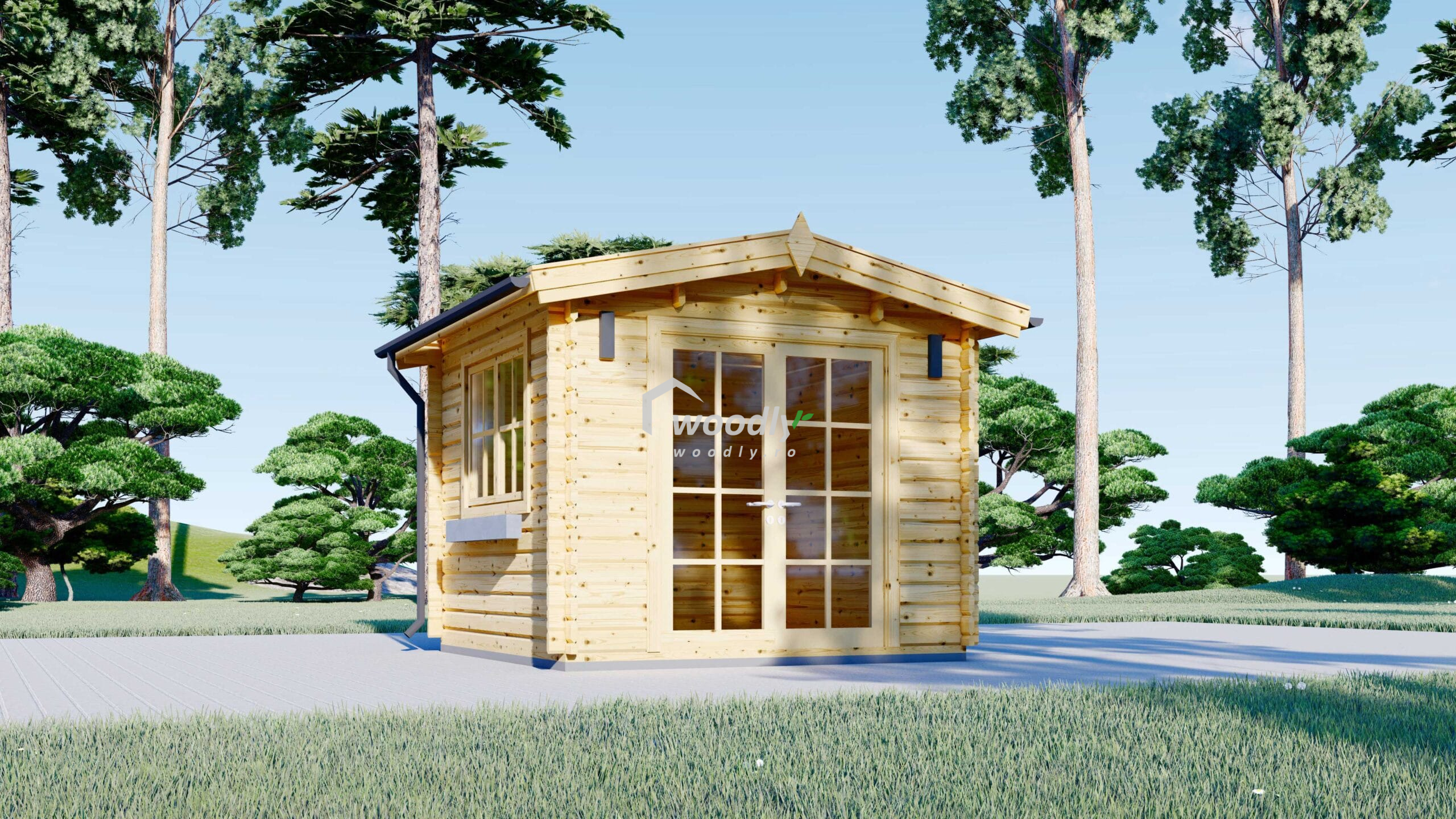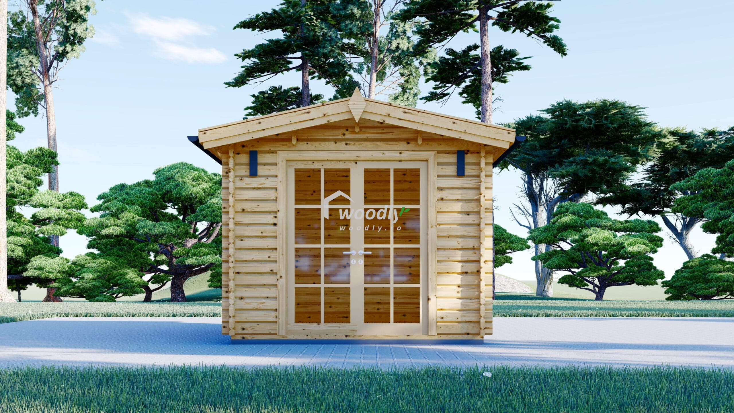 Căsuță de grădină din lemn la cheie, ADAM, modulară, 9mp, 1 camera, perete unic de 44mm, 3x3m