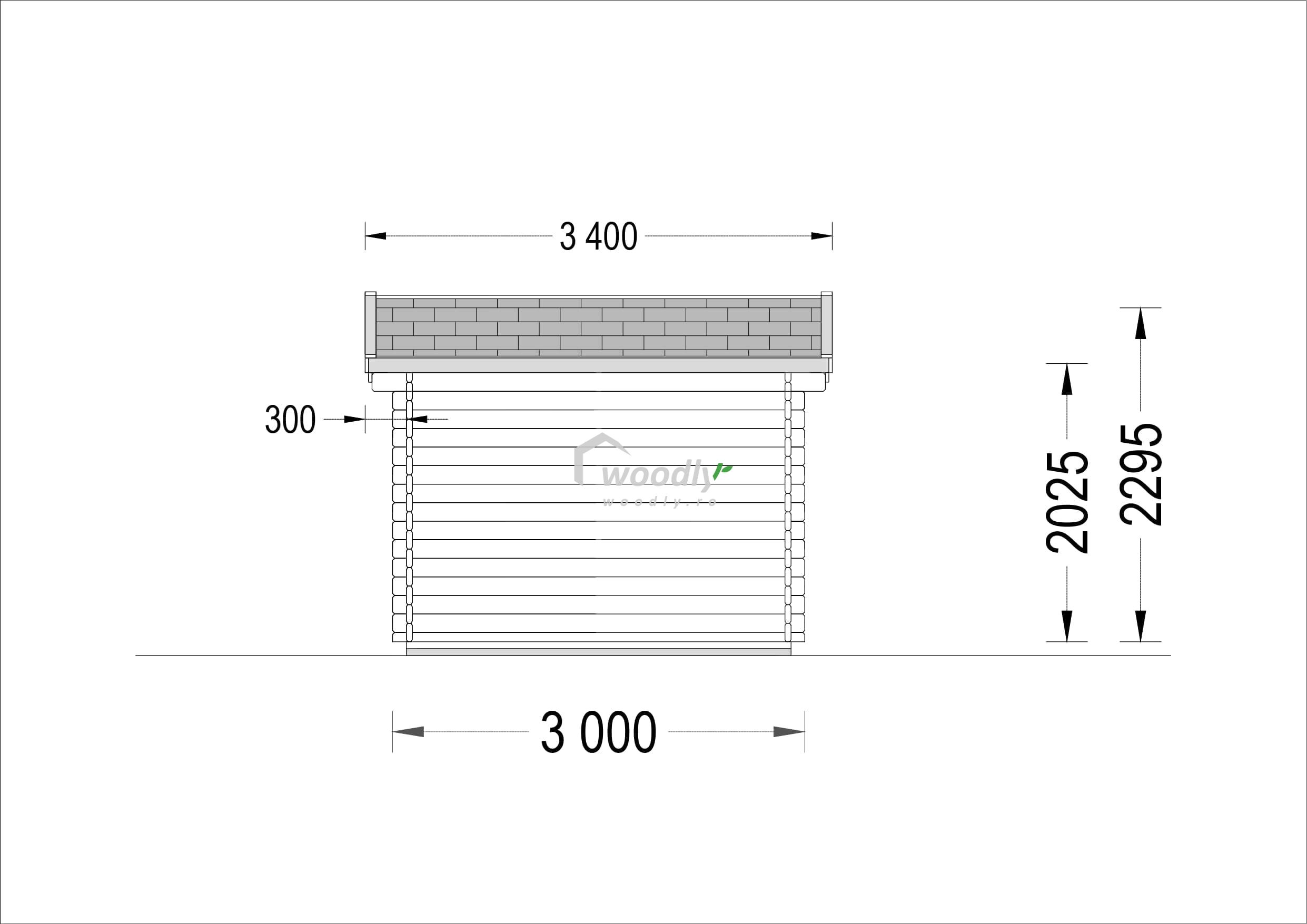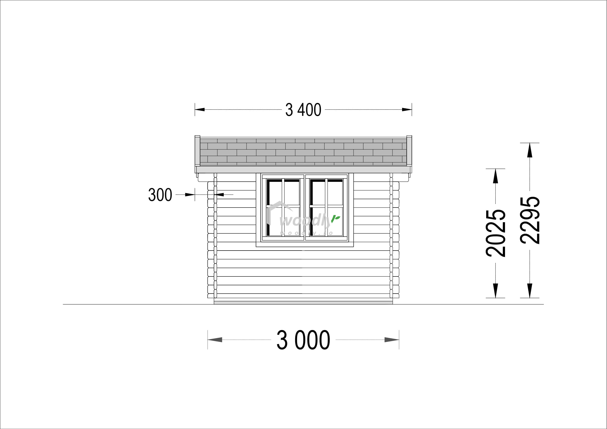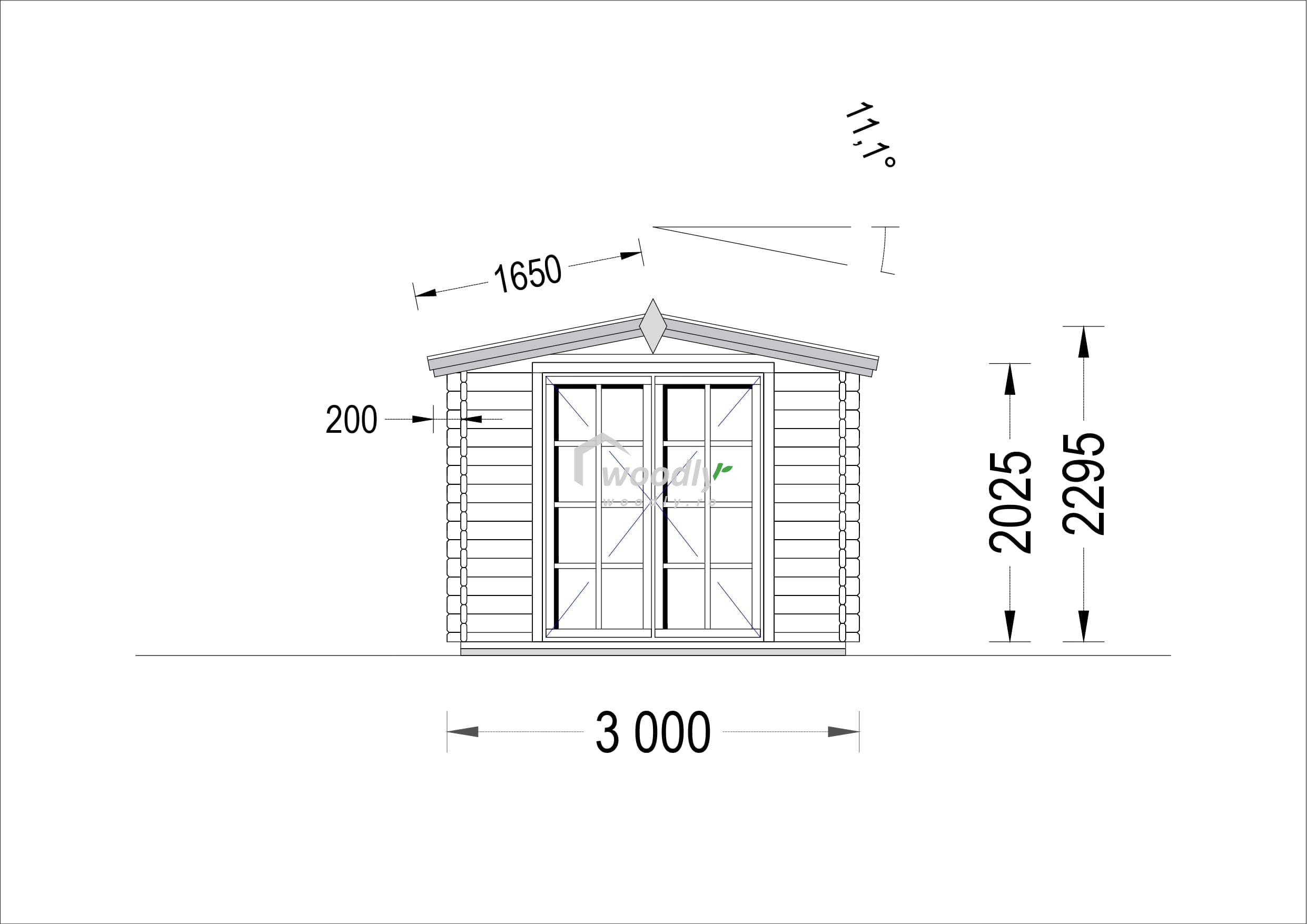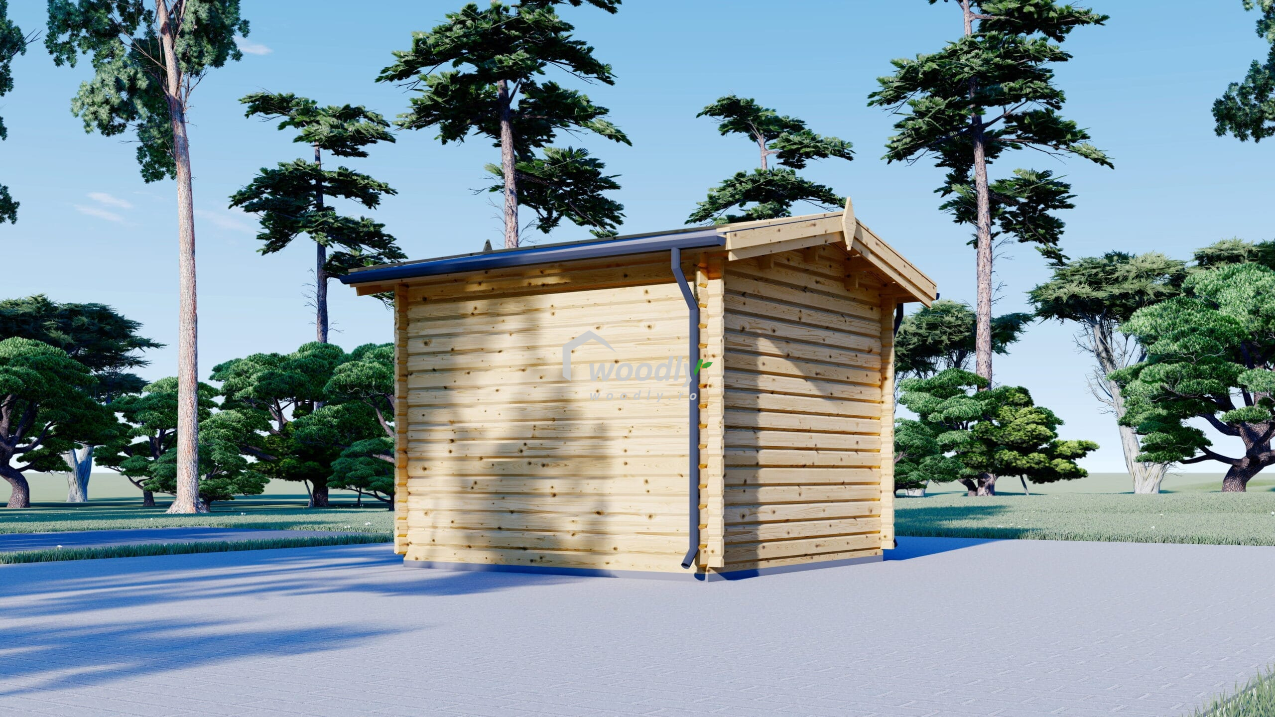 Căsuță de grădină din lemn la cheie, ADAM, modulară, 9mp, 1 camera, perete unic de 44mm, 3x3m