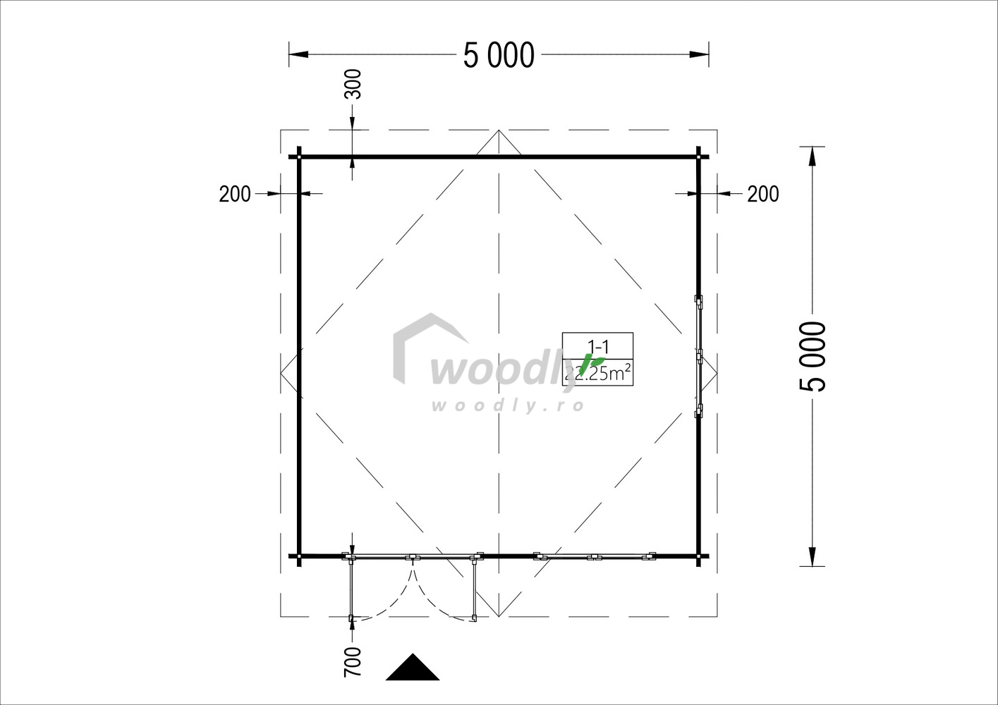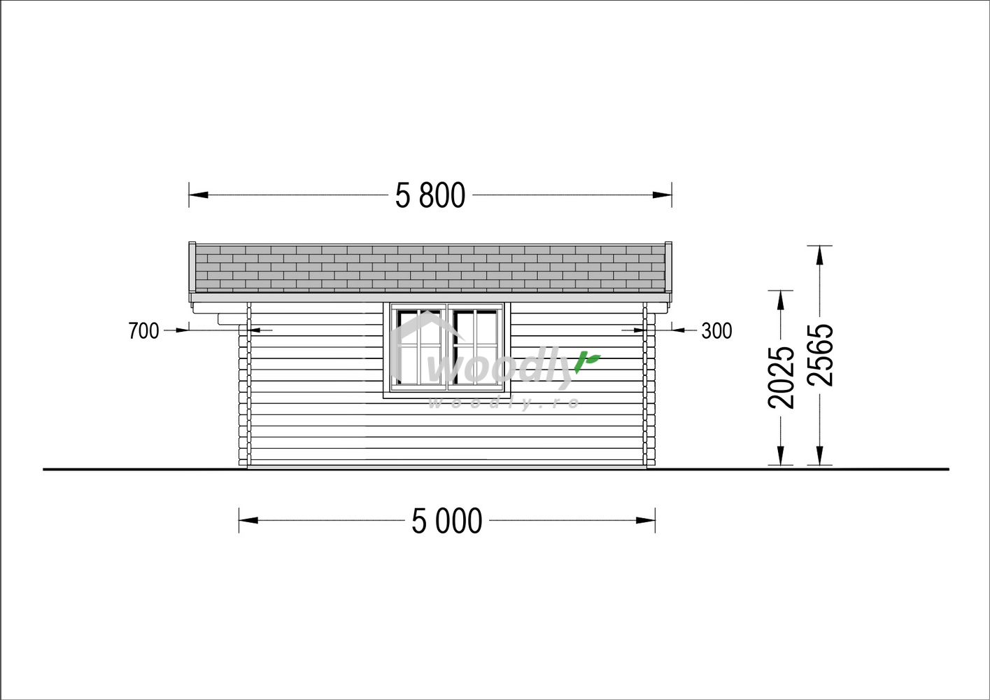 Căsuță de grădină din lemn la cheie, NATURA, modulară, 25mp, o camera, 5x5m, perete unic 44mm, acoperis in doua ape