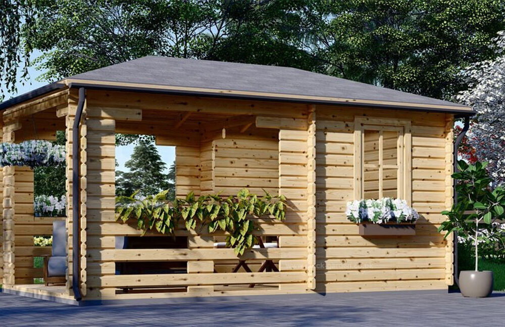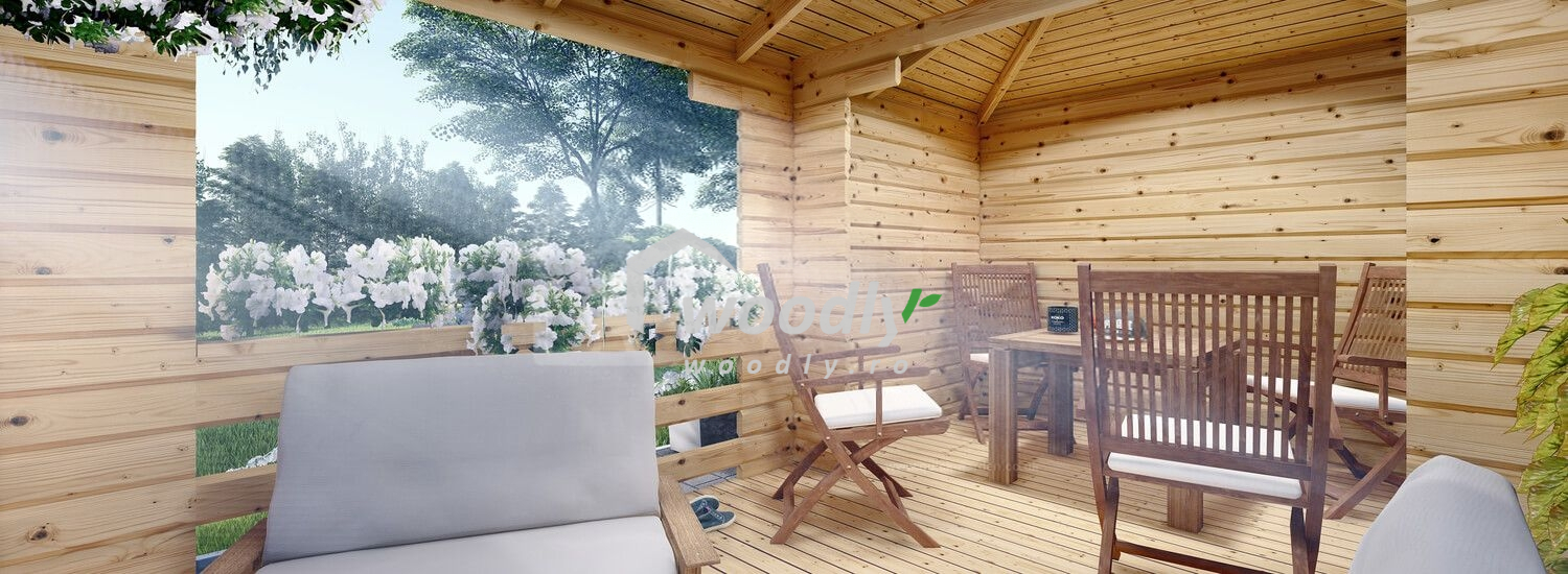 Foișor de grădină din lemn, FLORA, modular, 15mp, 3x5m, perete unic de 28mm, Pin Nordic