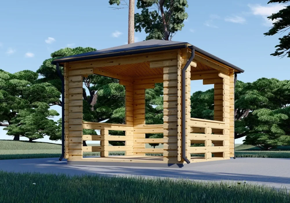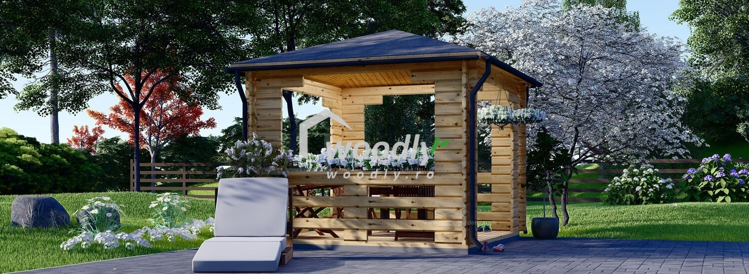 Foișor de grădină din lemn, FLORA, modular, 9mp, 3x3m, perete unic de 44mm, Pin Nordic