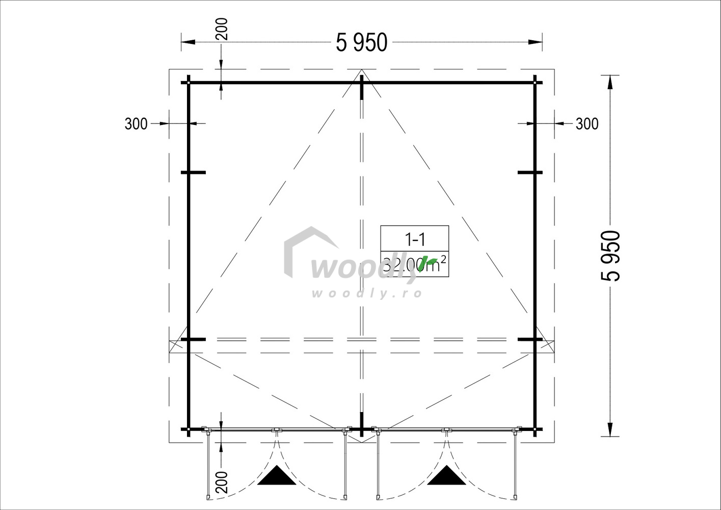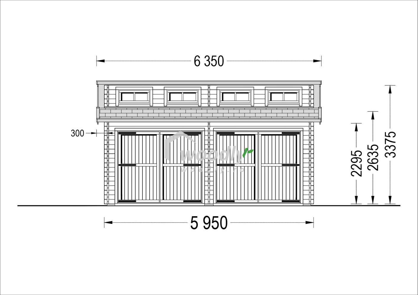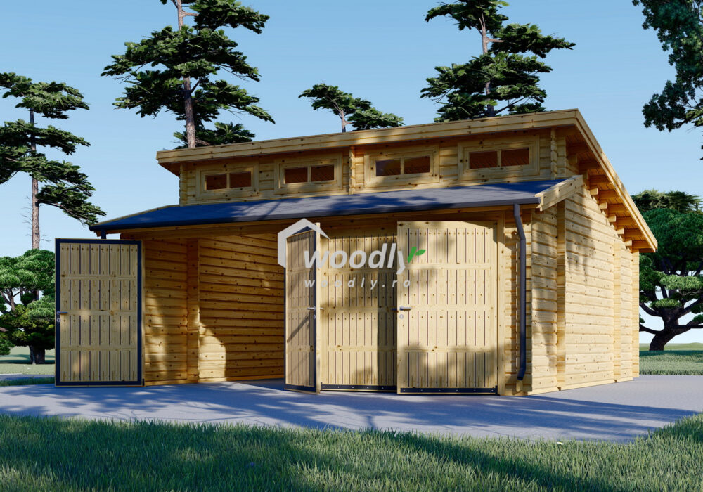 Garaj din lemn dublu, la cheie, TWIN DUO, modular 6x6m, 36mp, perete unic de 44mm,