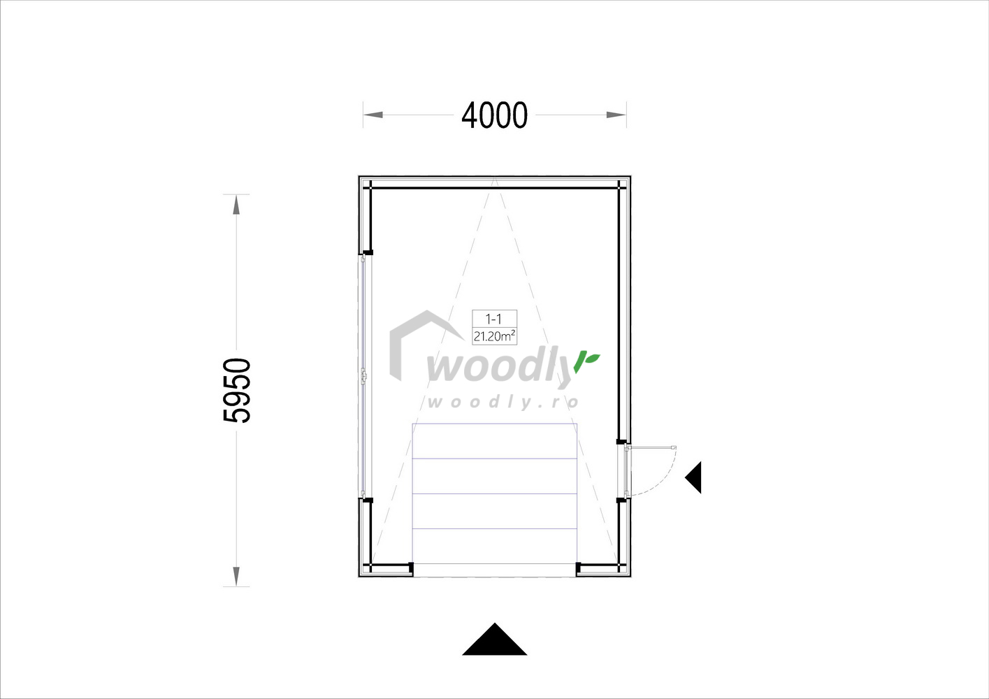 Garaj din lemn izolat, la cheie, SILVIA F, modular, 24mp, acoperiș într-o apă, perete dublu de 34mm + izolație + 20mm, 4x6m