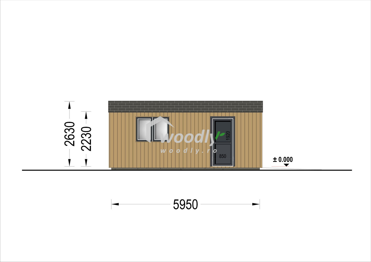 Designul minimalist se potrivește perfect în orice tip de peisaj. Detaliile, precum două intrări și o fereastră, oferă funcționalitate și un plus de lumină naturală, contribuind la un ambient plăcut în interior.