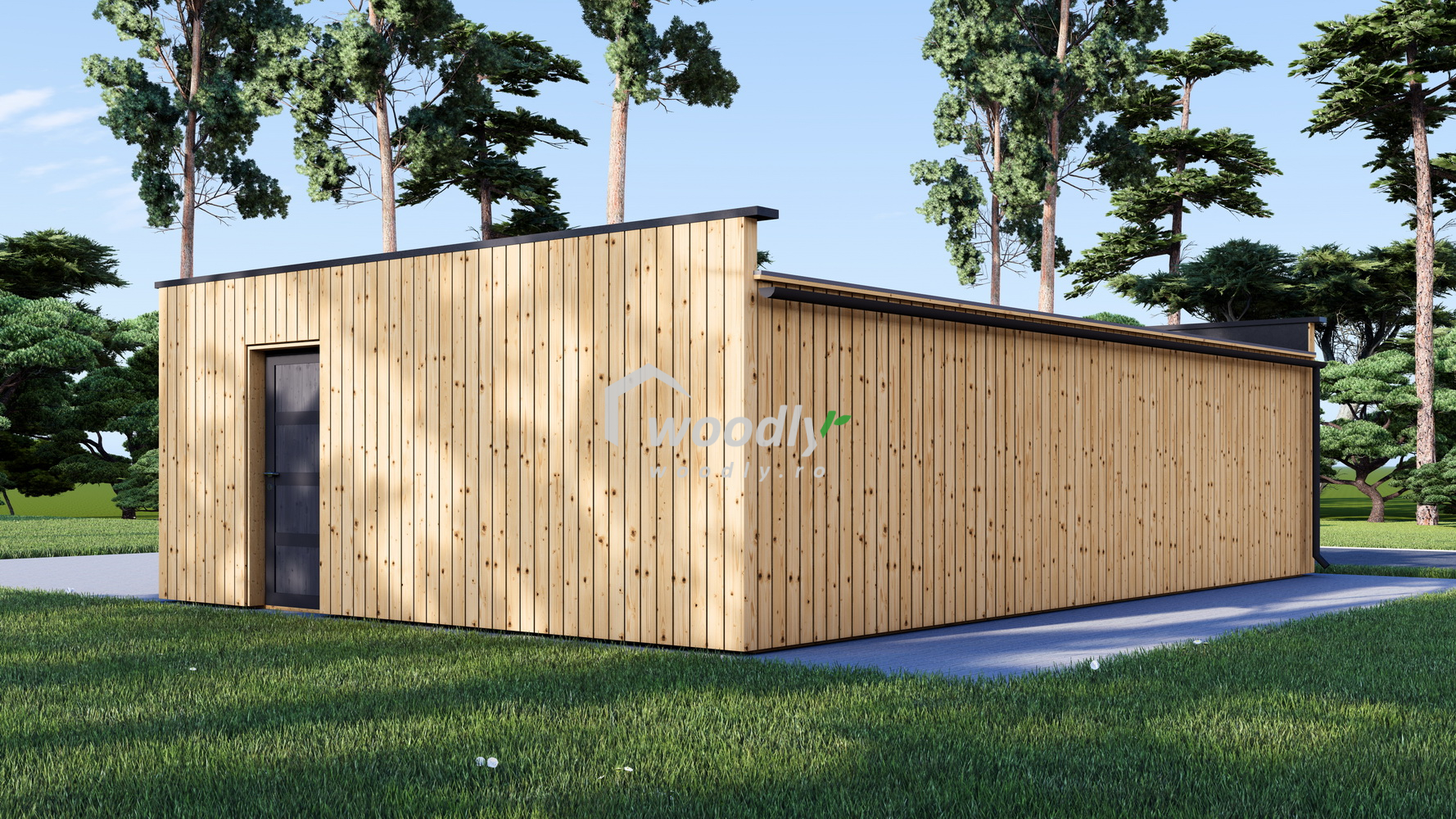 Garaj din lemn triplu izolat, la cheie, SILVIA F TRIO, modular, 54mp, acoperiș într-o apă, perete dublu de 34mm + izolație + 20mm, 9x6m