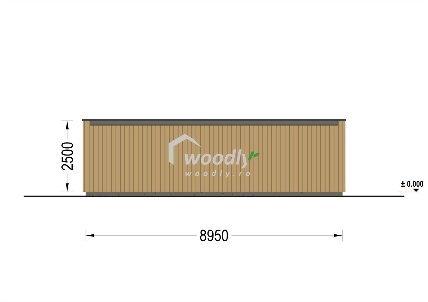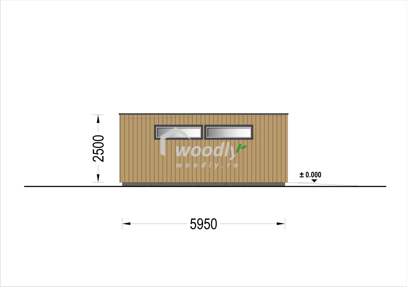 Ferestrele laterale discrete permit iluminarea naturală a interiorului, oferind vizibilitate fără a compromite intimitatea. Panourile verticale moderne conferă construcției un aspect sofisticat și echilibrat, care se integrează perfect în orice peisaj urban sau rural.